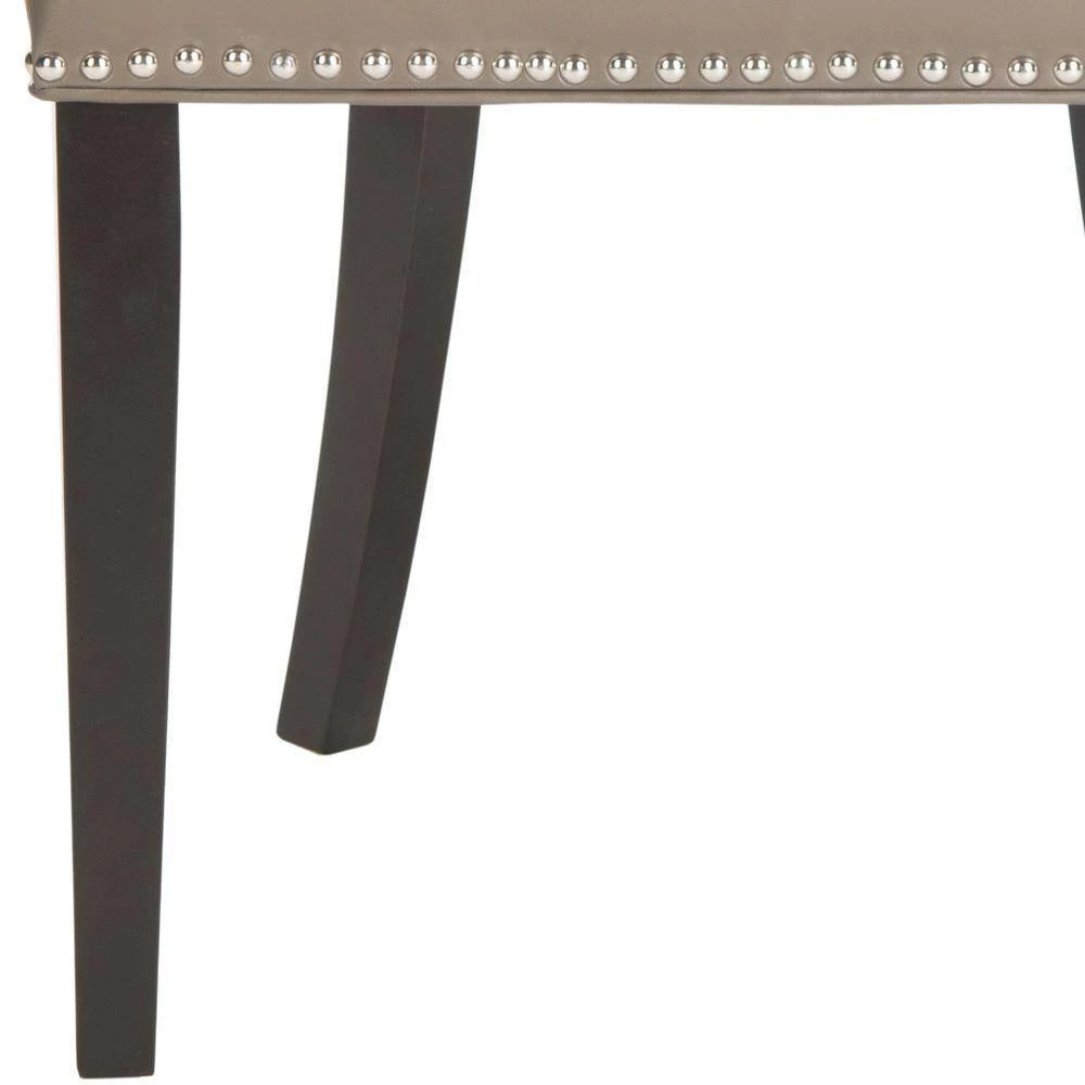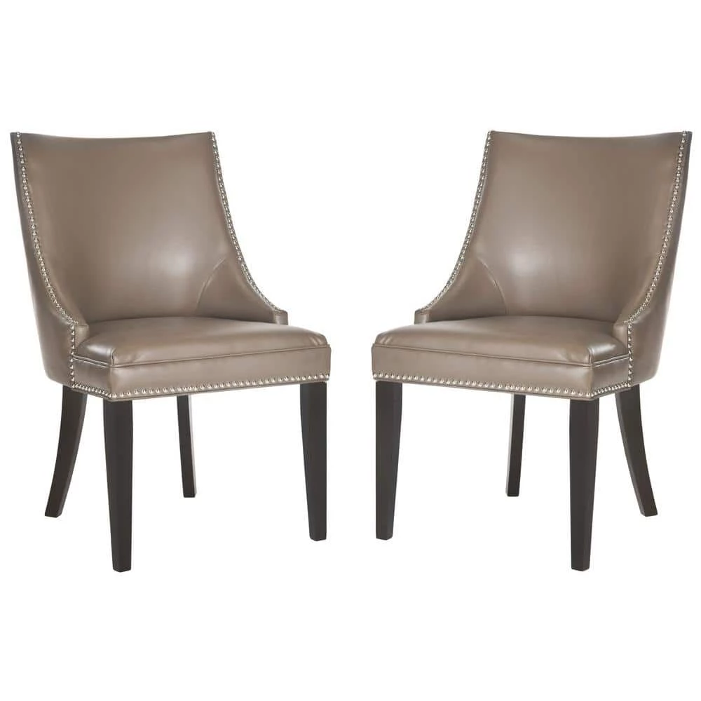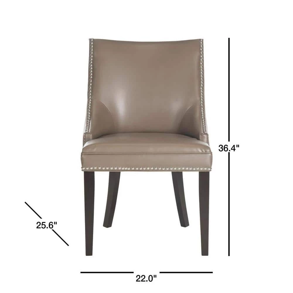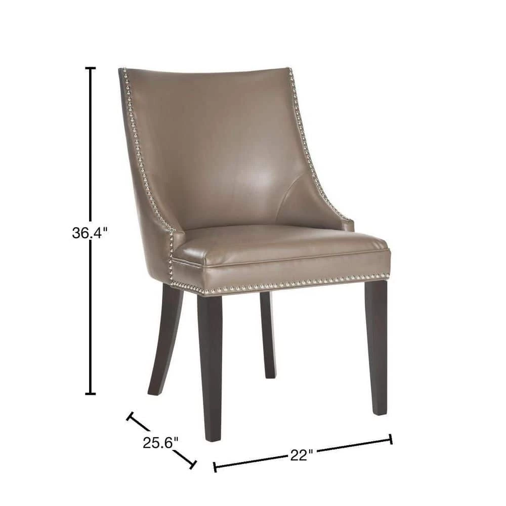 The transitional Afton side chair complements a range of dining room styles with its graceful sloping back, and sturdy espresso-finished birch wood legs. With all the dressmaker details of a custom designer chair, Afton is upholstered in clay bicast leather and finished with silver nailhead trim. It is a perfect companion for country homes, city apartment or formal manors.