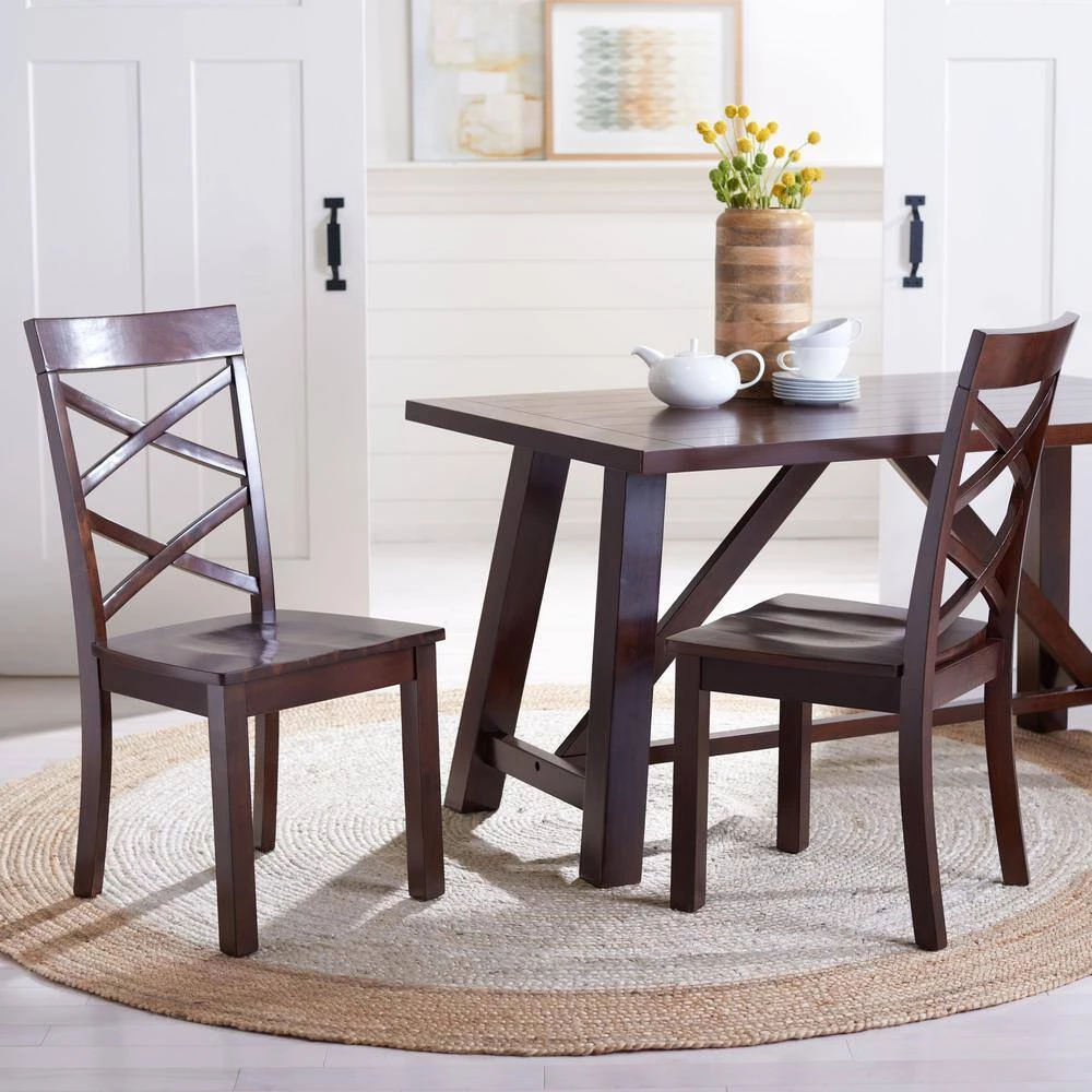 Bring a touch of tradition to the kitchen or dining room with this Ainslee Dining Chair. A double crossed back gives Ainslee unique visual intrigue while its rich brown finish makes it warm and inviting for hours of comfortable conversation around the table. Sold in sets of 2. This is a great addition for your home whether you live in the country side or the busy city.
