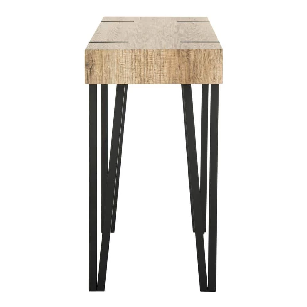 Bold and beautiful, this rectangular rustic midcentury wood top console table is a modern heirloom. Inspired classic American designers, its canyon grey finish and sinuous black hairpin legs lend instant character to the hallway, foyer or living room. Perfect accent for any home decor whether you live in the country side or the busy city.