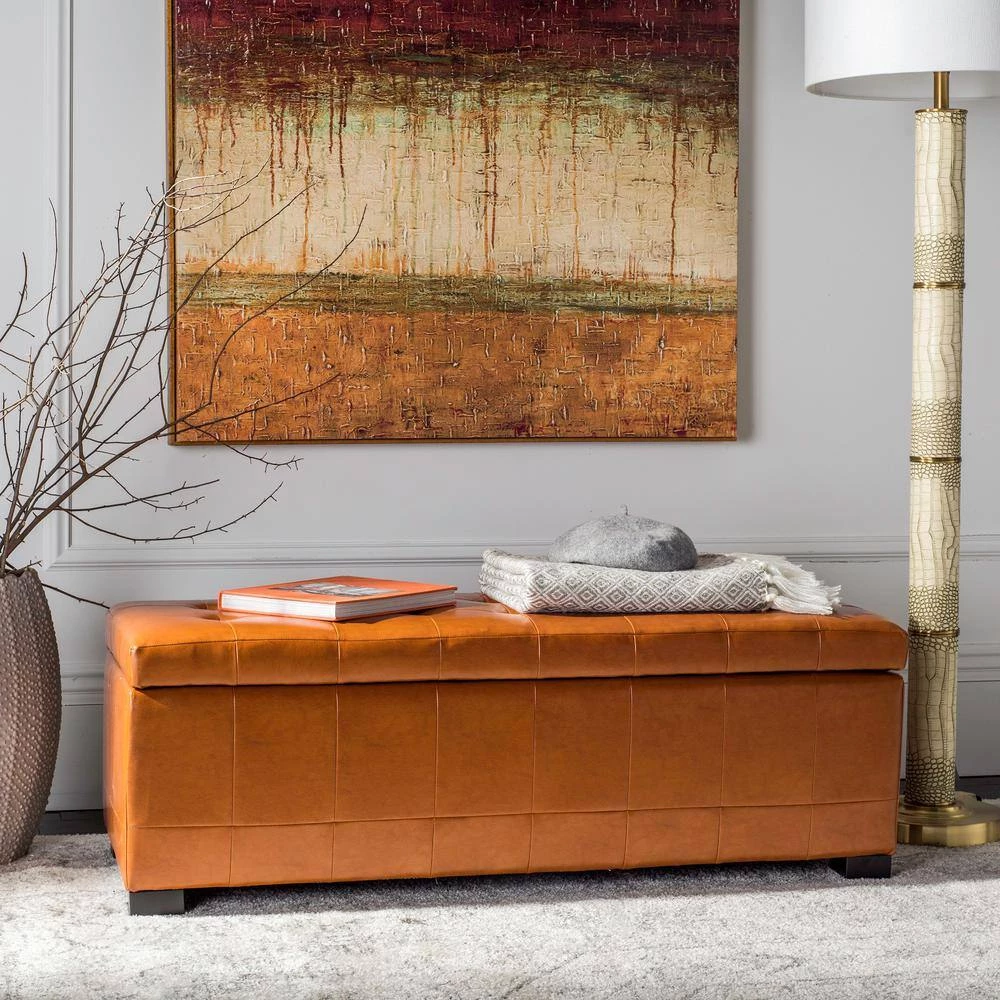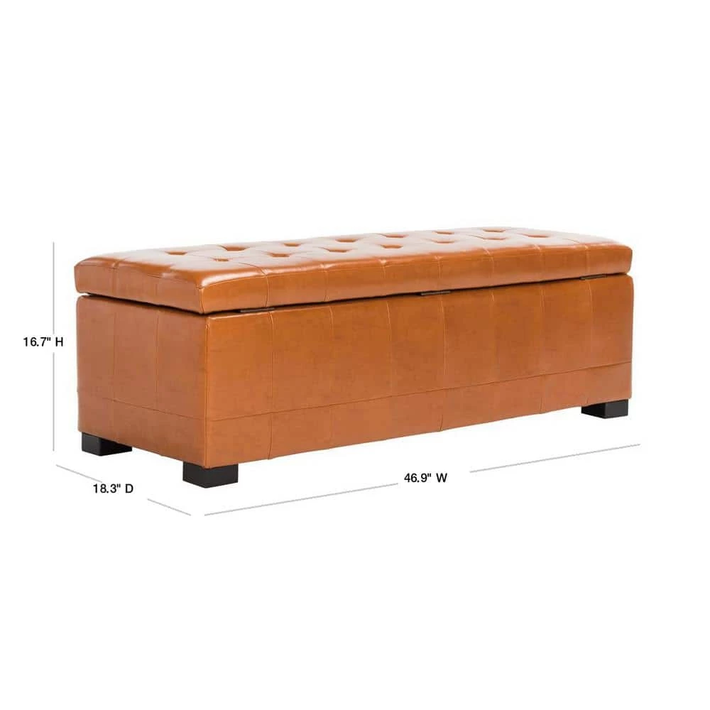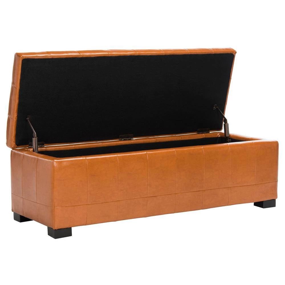 The Safavieh Hudson Ottomans Bench is ideal for adding the finishing touch to any room. This bench has wooden materials and is designed with leather upholstery, providing you with luxury and uncompromised comfort. Featuring a modern design, it is perfect for adding a sleek element to any home. Built with a flip top, it has plenty of space to store various household items, keeping them organized and accessible.