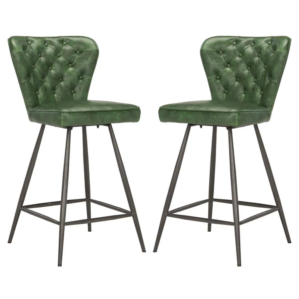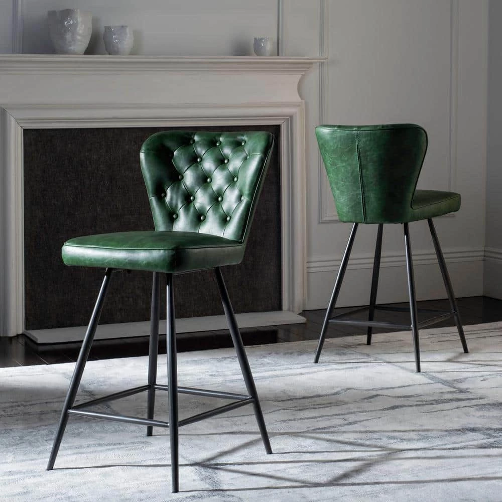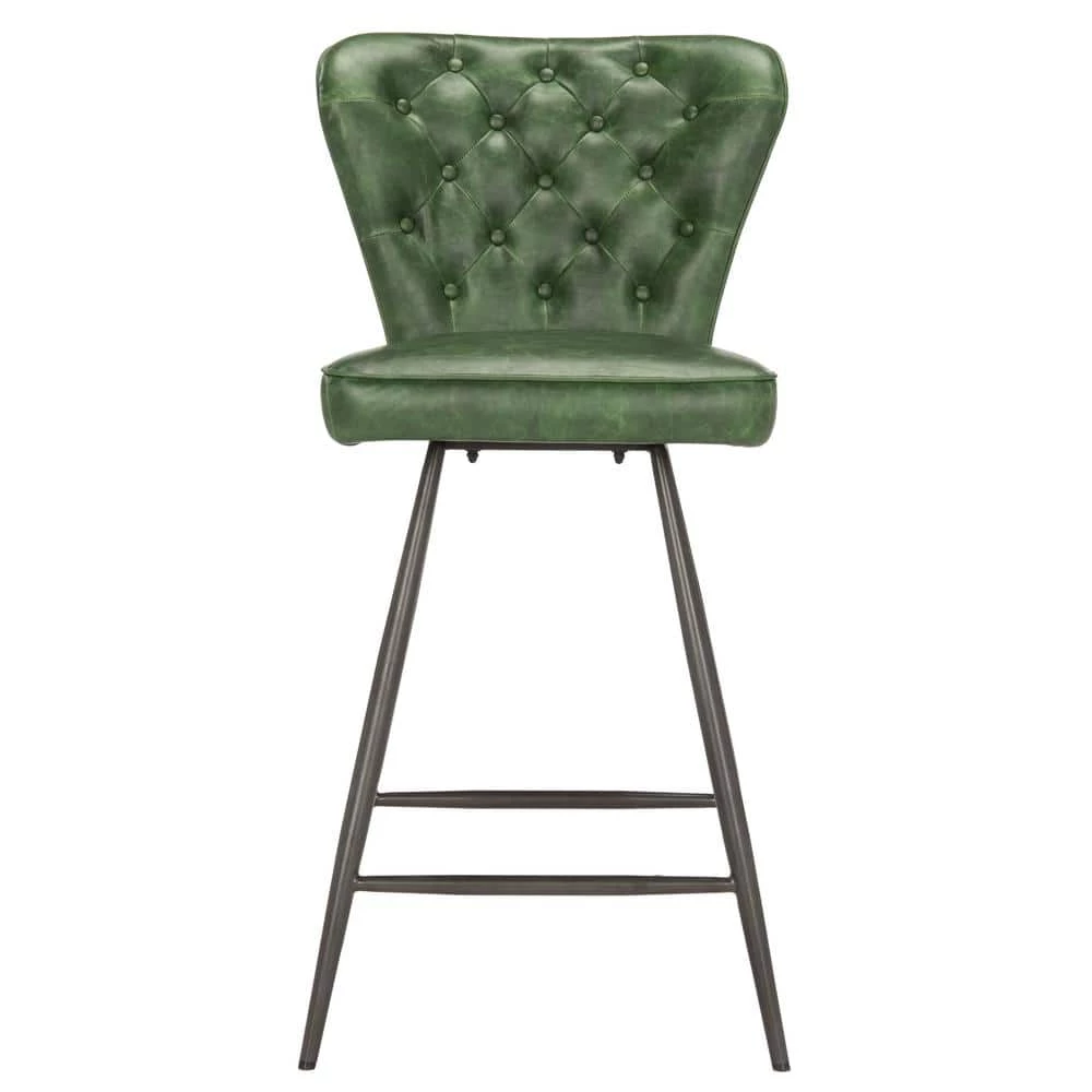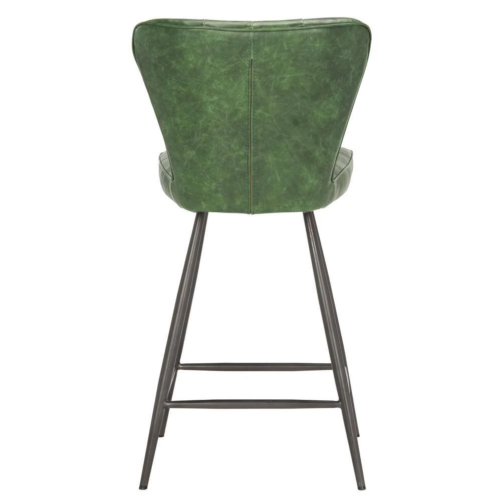This upscale mid-century counter stool instantly updates any contemporary dining area with vintage curves and sleek metal legs. Designed for the modern jetsetter, its leather-style upholstery with tufted detail brings character and warmth to the table. This is a great addition to your home whether in the country side or busy city.