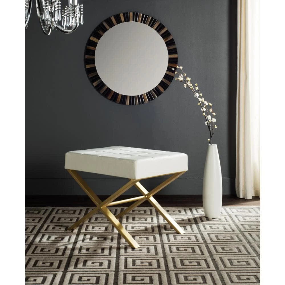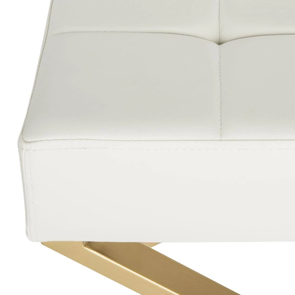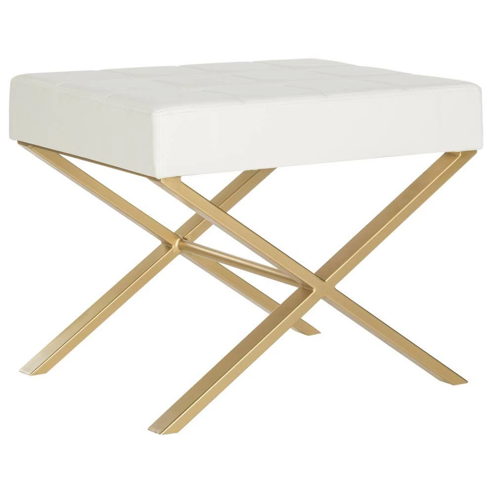 Redefine your home aesthetic with the Safavieh FOX Ottomans Ottoman. This ottoman has a metal build and faux leather upholstery, resembling authentic leather but is more easily maintainable. It has a modern style, which adds a sleek touch to your home decor.
