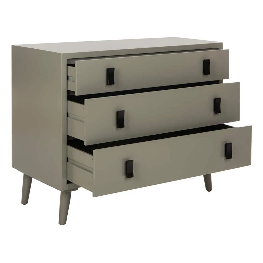 This 3-drawer chest offers a contemporary spin on vintage style. Ideal as a nightstand or as a chest in the living room, its neutral dark grey finish complements any decor. Its black metal hardware adds a touch of industrial luxe style to its drawers. A beautiful addition to your country home or modern house.