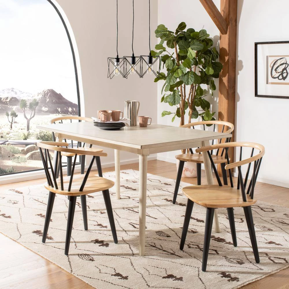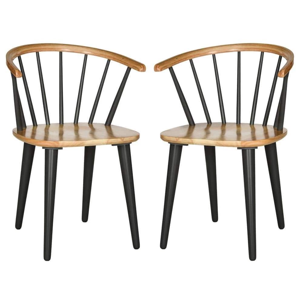 A chic mix of natural and dark Gray gives transitional flair to a colonial classic. With all the graceful curves of an antique captain’s chair, this set of two dining chairs is crafted of sustainable rubber wood with backrest spindles and splayed legs. These chairs are the perfect addition to your home; add them for the extra pop you’ve always wanted.