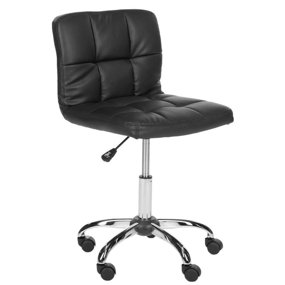 Inspired by the geometric leather aesthetic of the Bauhaus movement, the adjustable Brunner Desk Chair is wunderkind in the modern home office. Crafted with quilted black PVC leather and rubber wheels. It’s a stunning addition to the study or contemporary office suite.