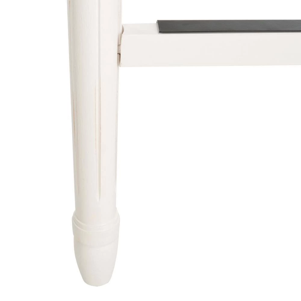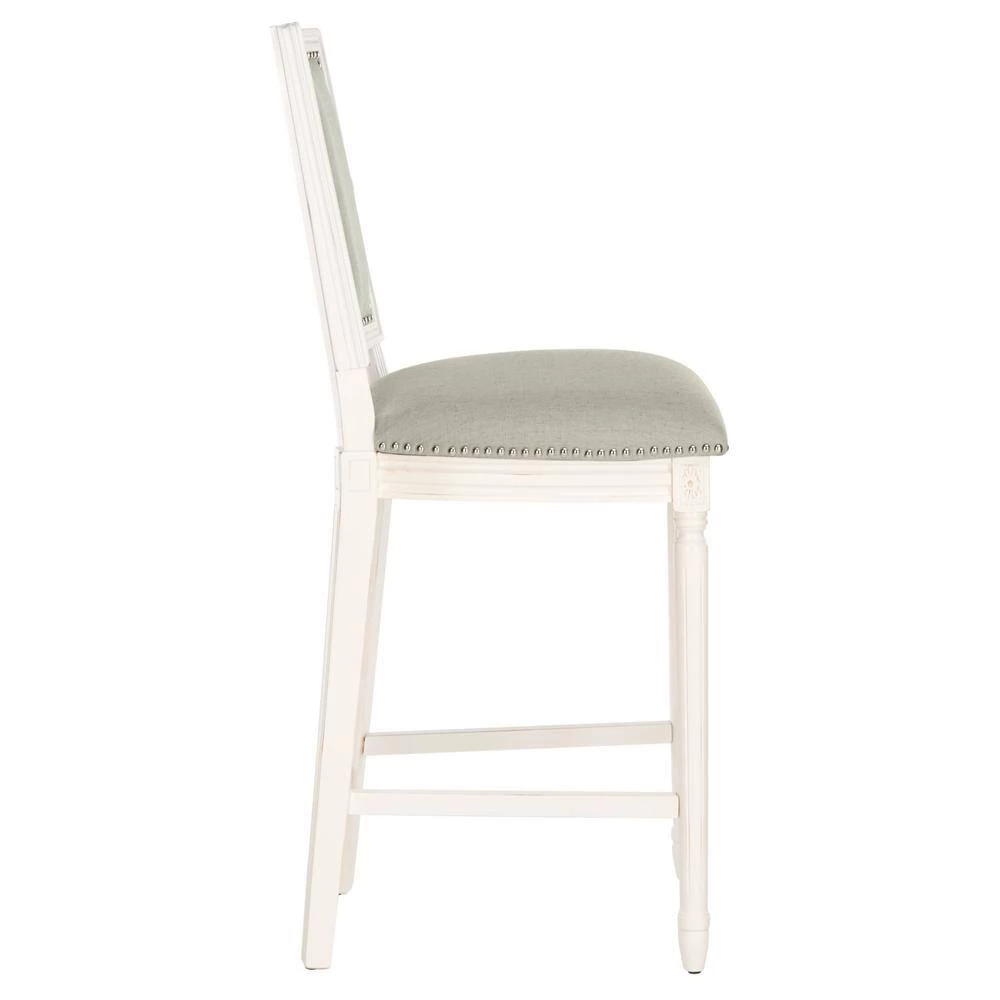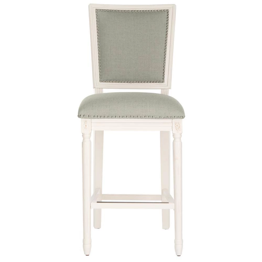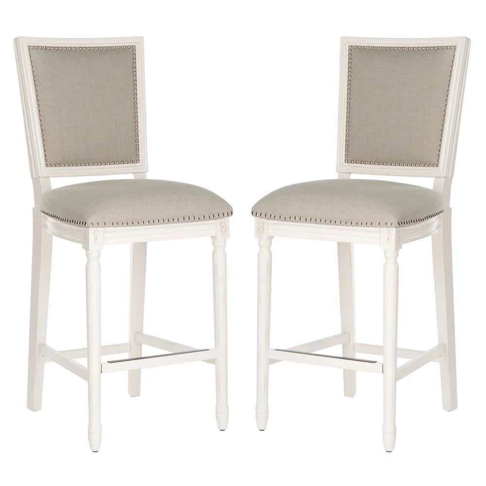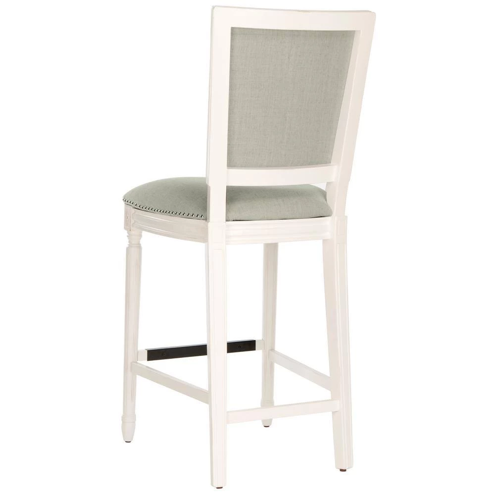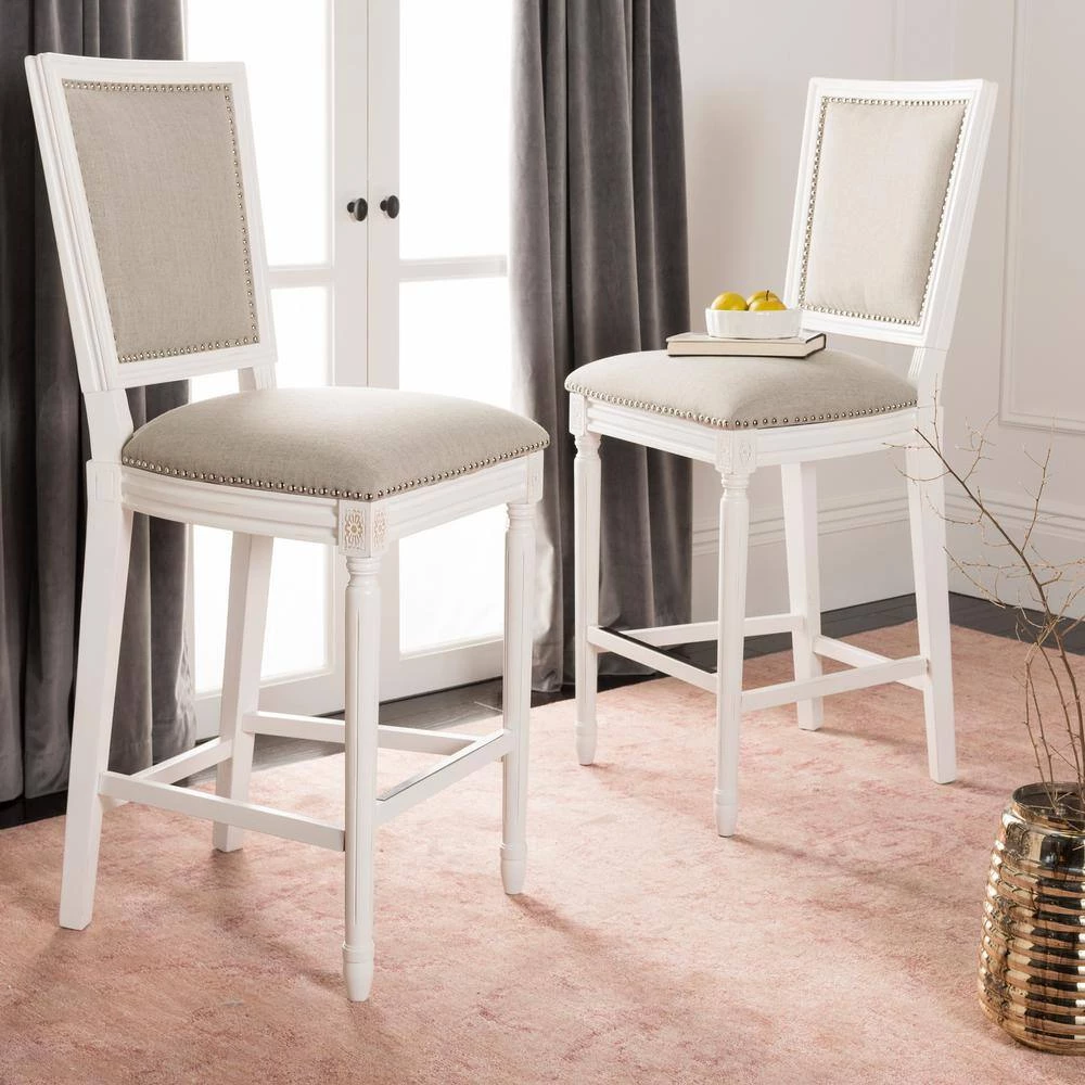 Entertain in style with this rectangle bar stool. Designed to bring French charm to the table, its chic light gray upholstery is paired with finely carved distressed white wood. Designers use it to add instant character to any dining area or breakfast bar. This is a great addition to your home whether in the country side or busy city.