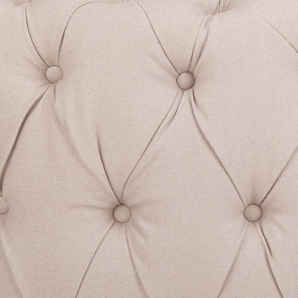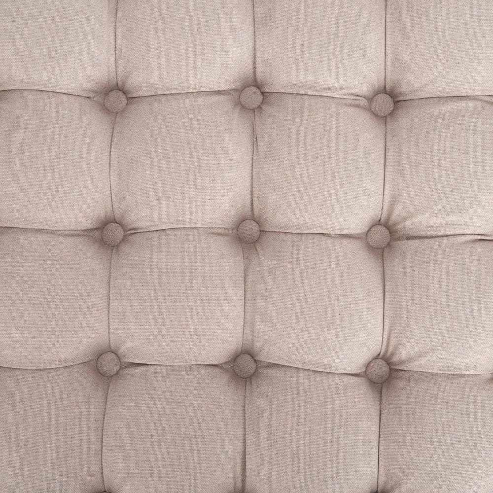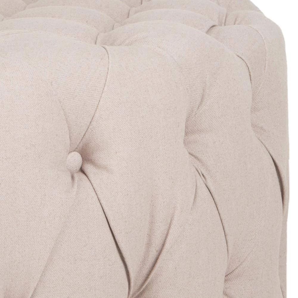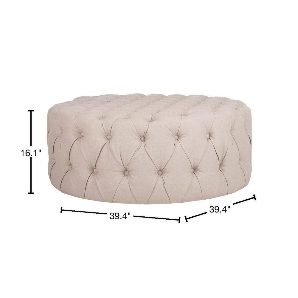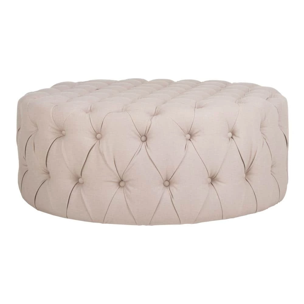 Brimming with sophistication, the elegant Charlene Ottoman recalls the 1930s Hollywood glamour with its lavish taupe linen fabric button-tufted on all sides. The oversized round shape and foam fill create a wonderful surface for use as a coffee table or extra seating. This is a great addition for your home whether you live in the country side or the busy city.