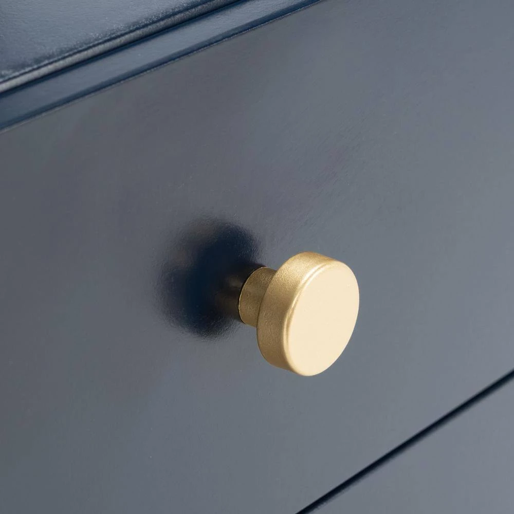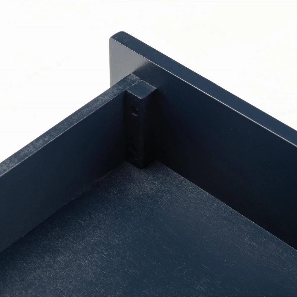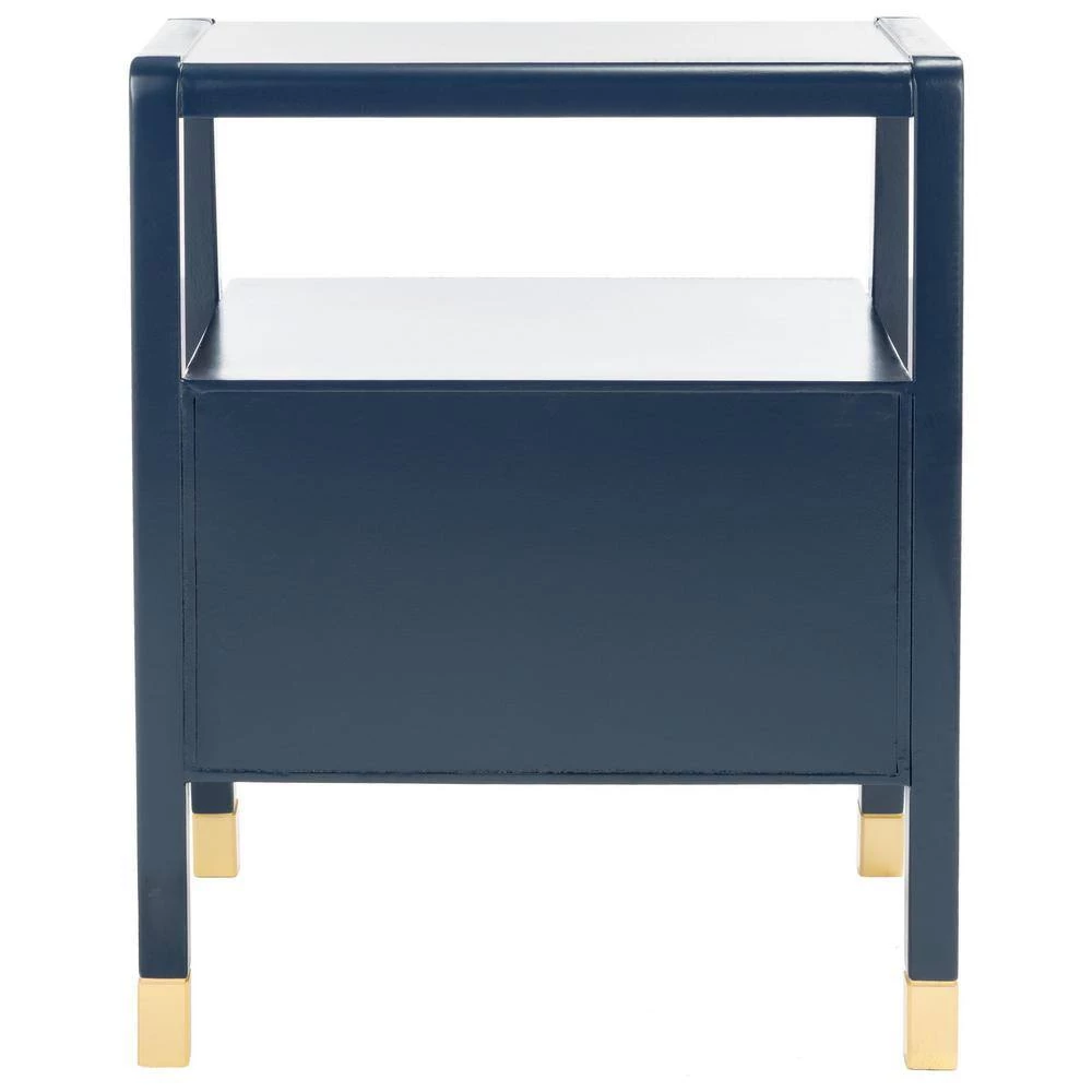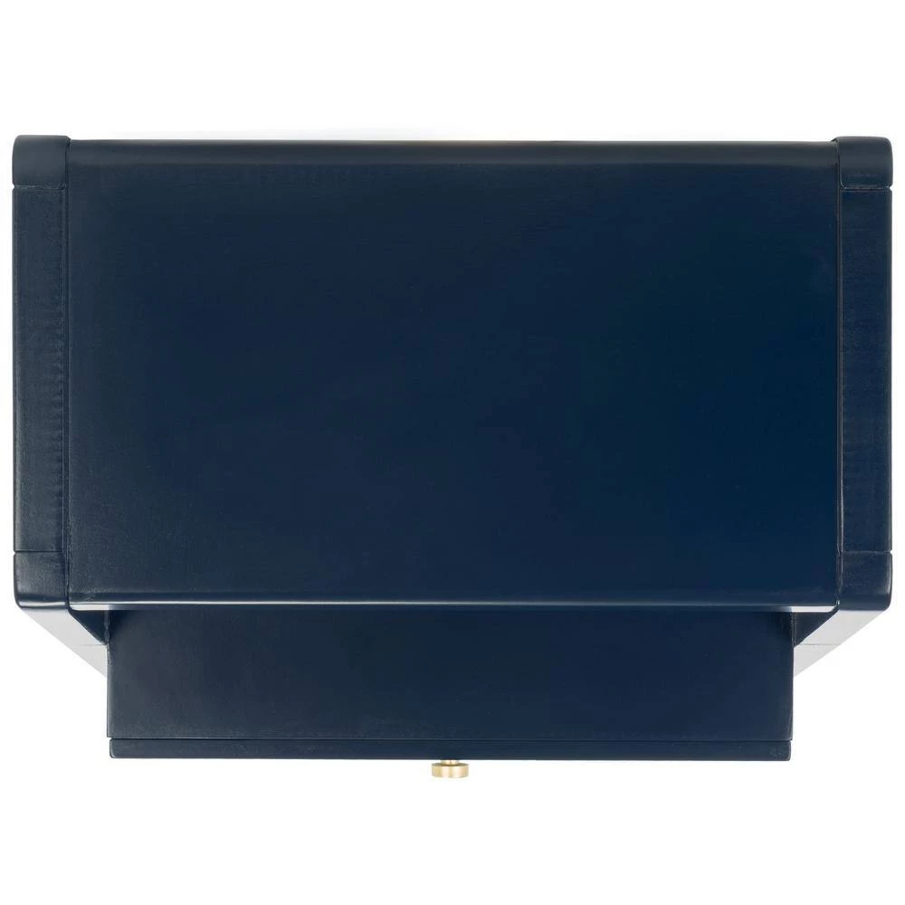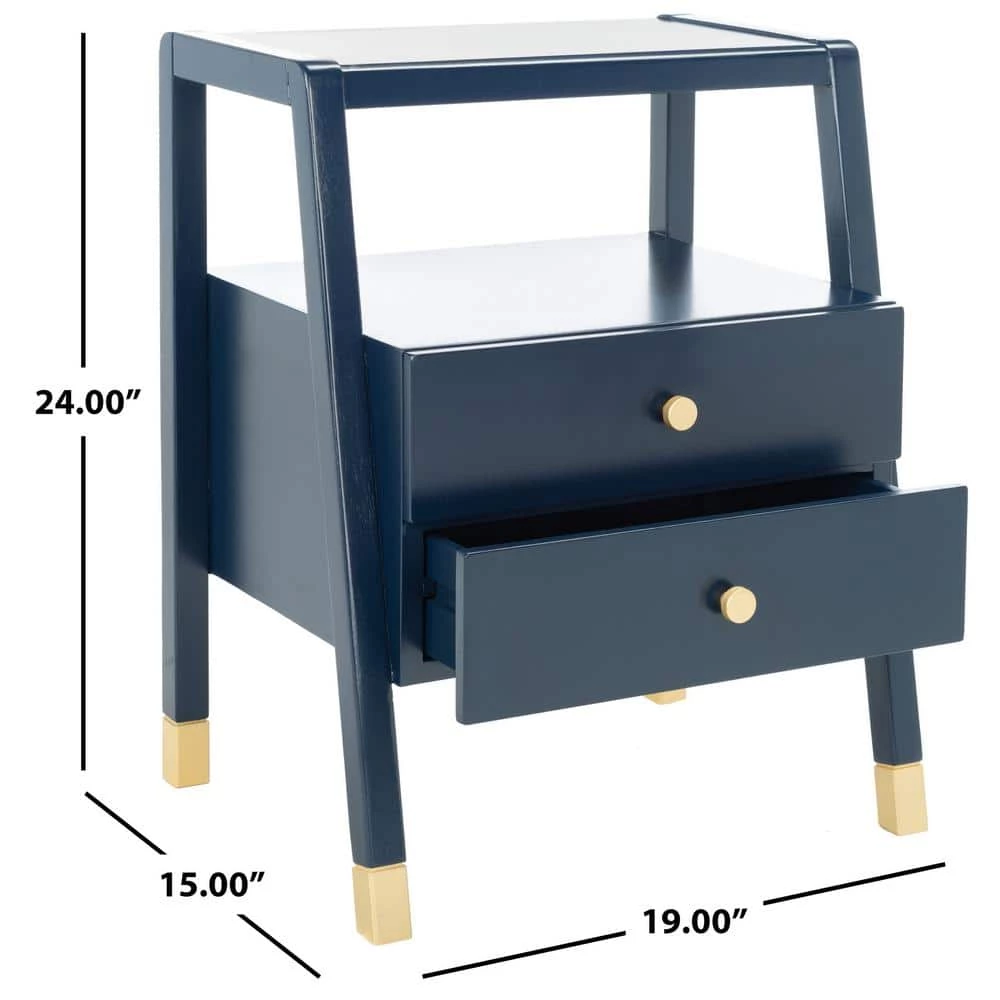 Give your decor a touch of glam with this contemporary-chic Cove Accent Table. Cove’s angled navy blue frame creates eye-catching depth in its unexpected silhouette and gold steel accents provide high-style artistic contrast. Designers love the extra storage of its 2-drawers and 1-shelf. This is a great addition for your home whether you live in the country side or the busy city.