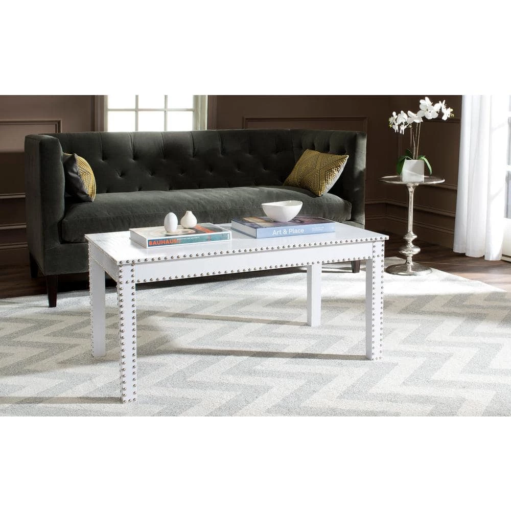Make a powerful statement in your living room with the Safavieh Fox Coffee Table. With a classic style, this coffee table will elevate your living room with a timeless piece. Featuring a wooden construction, it will enhance the feel of your home decor. It has nailhead trim, accenting it with a decorative border.