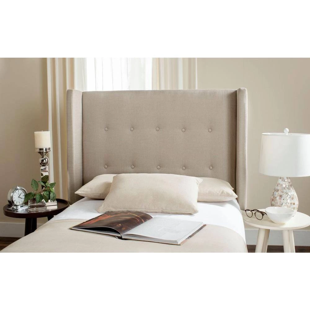 This handsomely tailored twin headboard is artfully upholstered in smoke fabric tightly fitted across its low-slung silhouette. Boasting contemporary straight-lined wings, this striking uncomplicated design complements contemporary bedrooms in style. This is a perfect addition to any home bedroom decor.