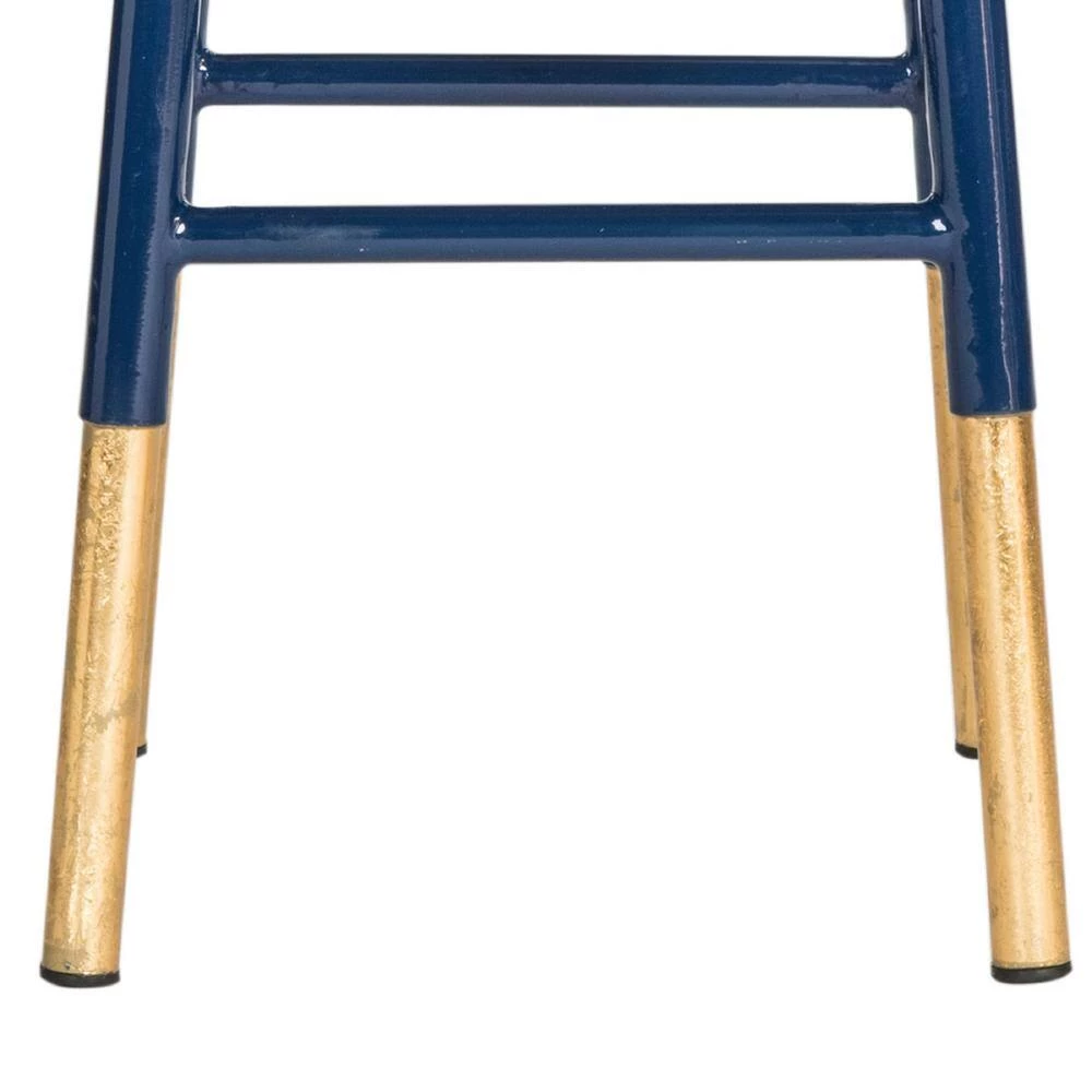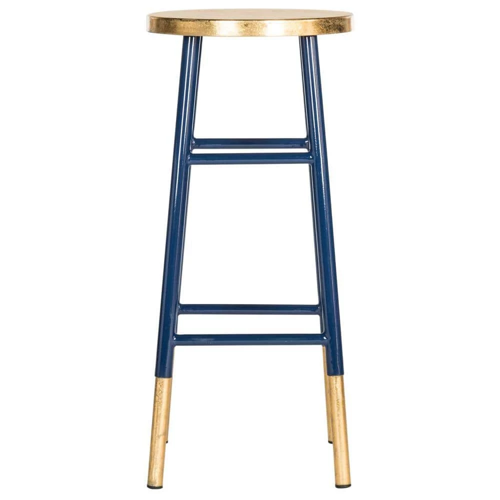 Whether pulled up to your kitchen island or bar, the Safavieh FOX Bar Stool adds a sophisticated feel to any space. This stool features a modern style, adding a contemporary element to your seating area. It features a backless design, giving it a minimalist appearance that is also helpful for pushing it under the counter or bar. Designed from metal, it is resilient to everyday wear and tear, allowing it to last for years to come. This blue stool adds a lively touch of color to any decor. This stool has a foot rest, so you have a place to comfortably put your feet.