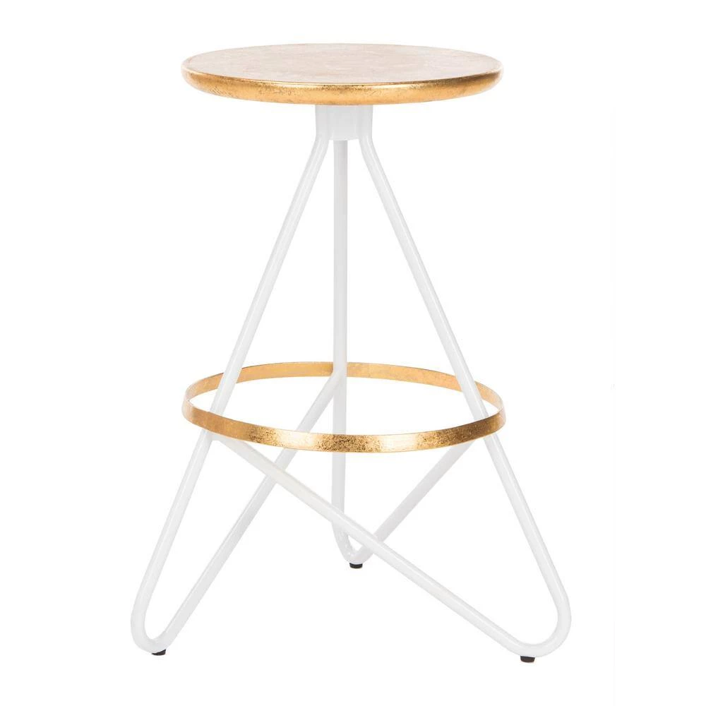 Inspired by retro industrial style, this Galexia Counter Stool is the life of the party. Crafted of iron in a clean white finish and shining gold accents, Galexia’s bold sculptural foundation adds vintage, whimsical style to any bar, kitchen island, or entertaining area. This is a great addition for your home whether you live in the country side or the busy city.