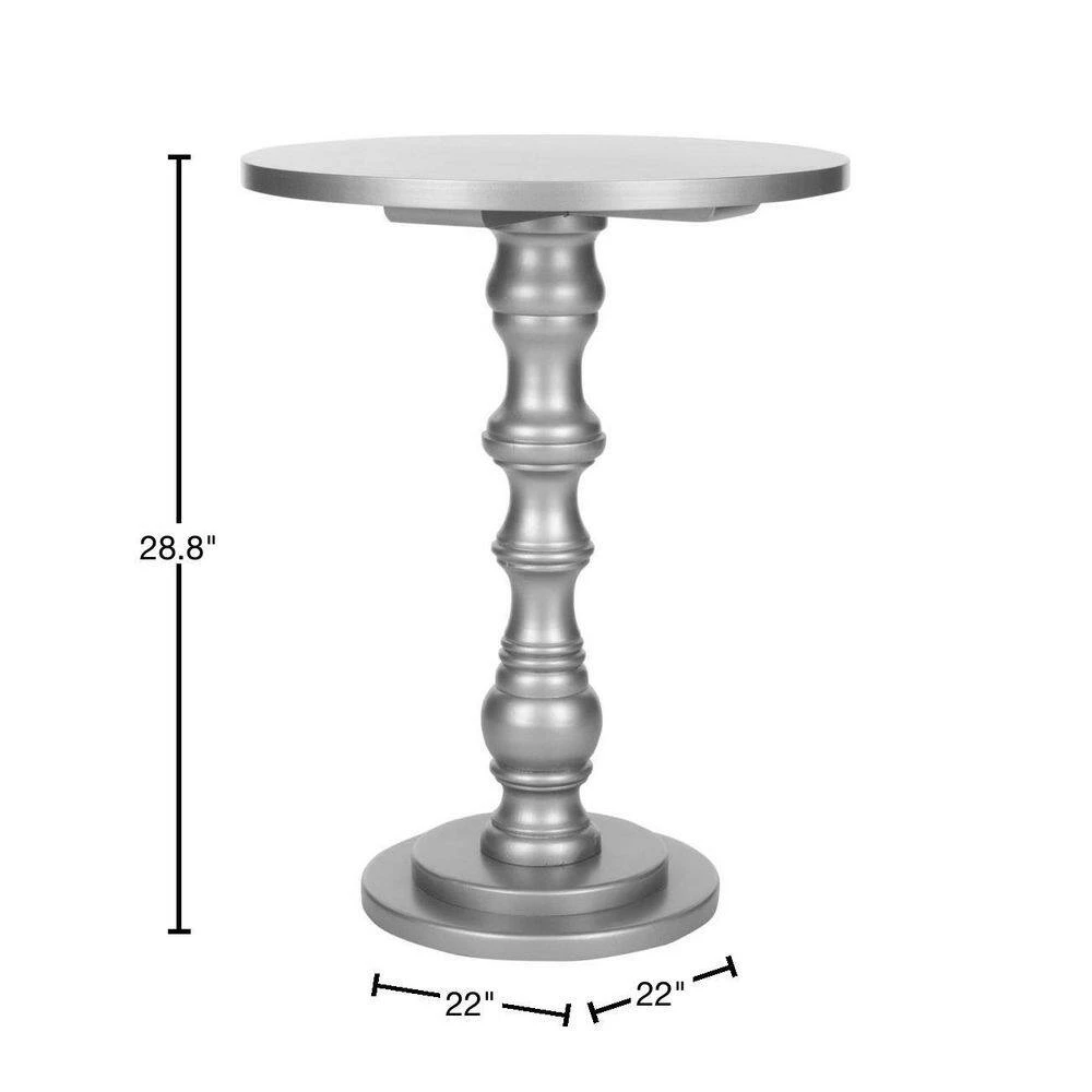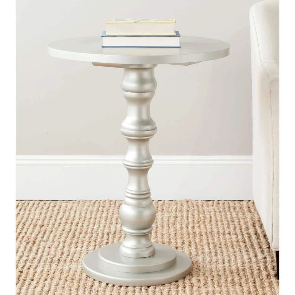 The Greta table offers a contemporary spin on the spindle table. With its rubbed silver, antique-style patina, this sturdy pine accent table adds just the right amount of modern romance to the bedroom, living room or even a walk-in closet. This piece will compliment any decor.