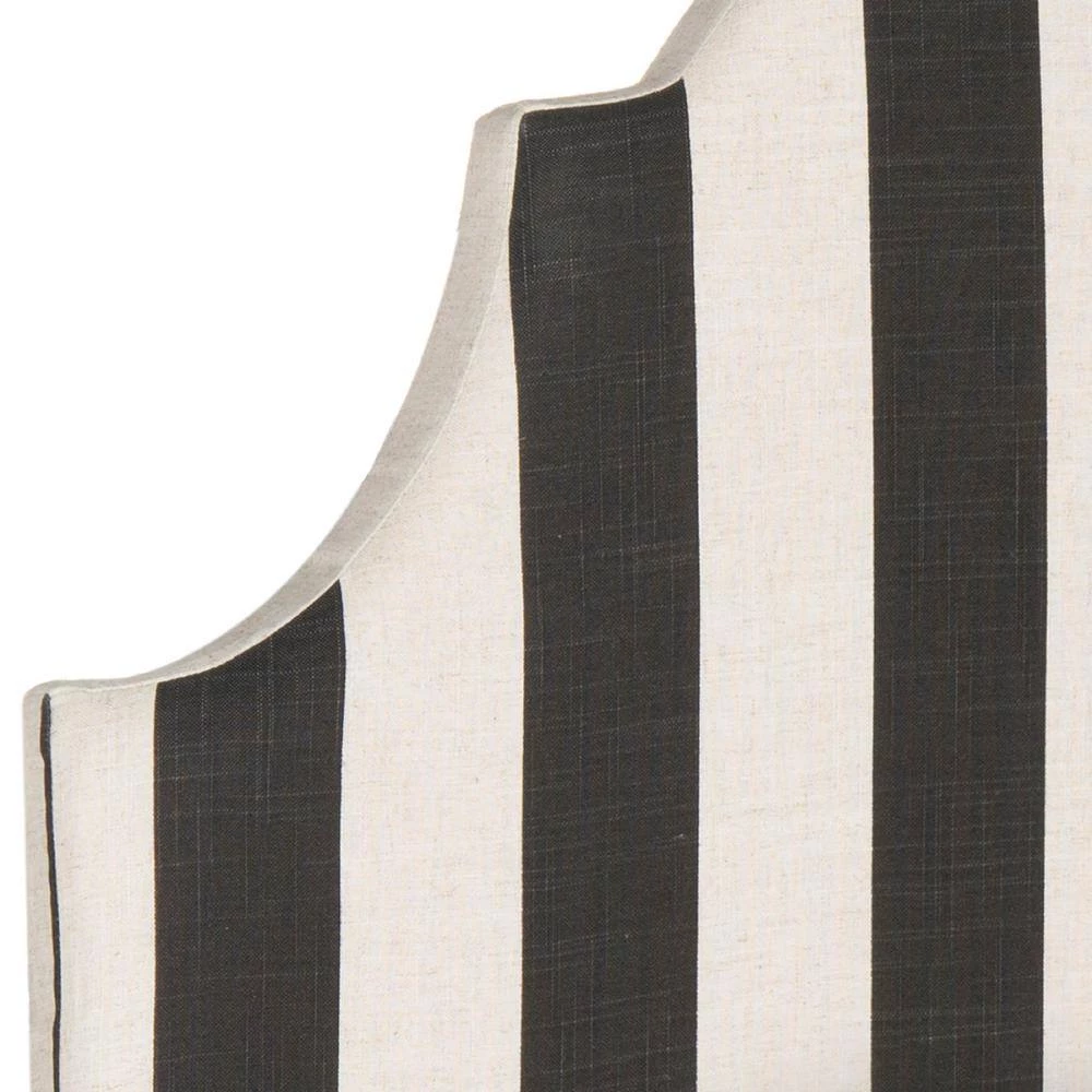 The dramatically arched Hallmar twin headboard in a chic black and white awning stripe makes an ideal choice for a beautiful bedroom makeover in minutes. Expertly tailored in organic linen blend upholstery, the graceful Hallmar silhouette is a classic. This is a perfect addition to any home bedroom decor.