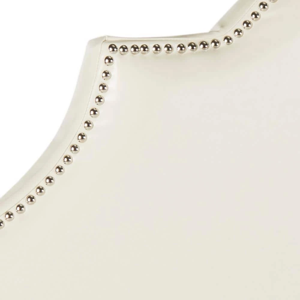 The dramatically arched Hallmar headboard in white bicast leather upholstery makes an ideal choice for a beautiful bedroom makeover in minutes. Expertly tailored with silver nailheads outlining a graceful silhouette, Hallmar is a timeless classic. This is a perfect addition to any home bedroom decor.