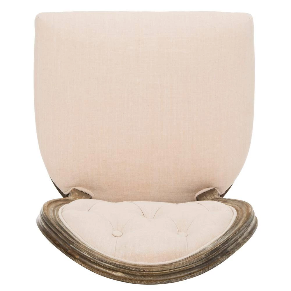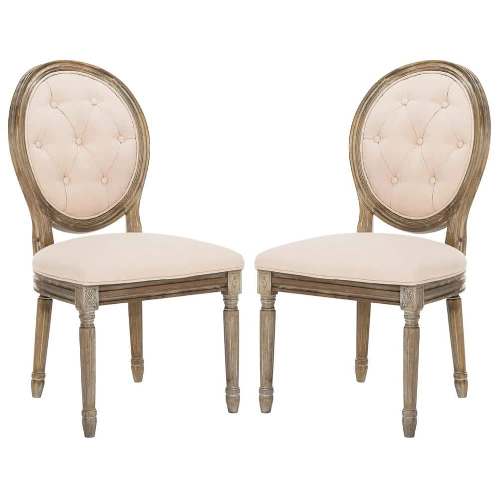 Inspired by the interiors of Paris’s top hotel, the Holloway Tufted Oval Side Chair brings grand style to the dining room, hall, or even a romantic bedroom. Its plush tufted beige upholstery and rustic oak wood frame make this side chair an instant classic. Whether country-chic or metro-mod, a great addition to any home.