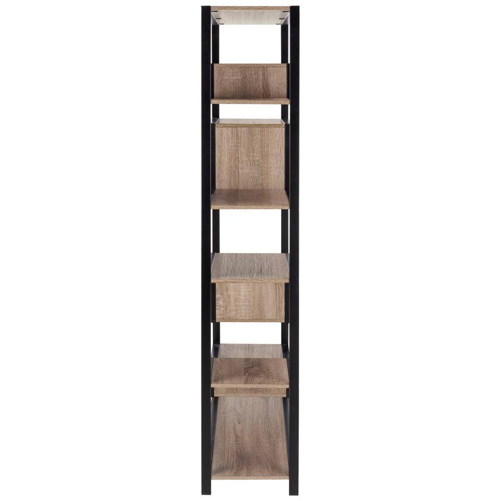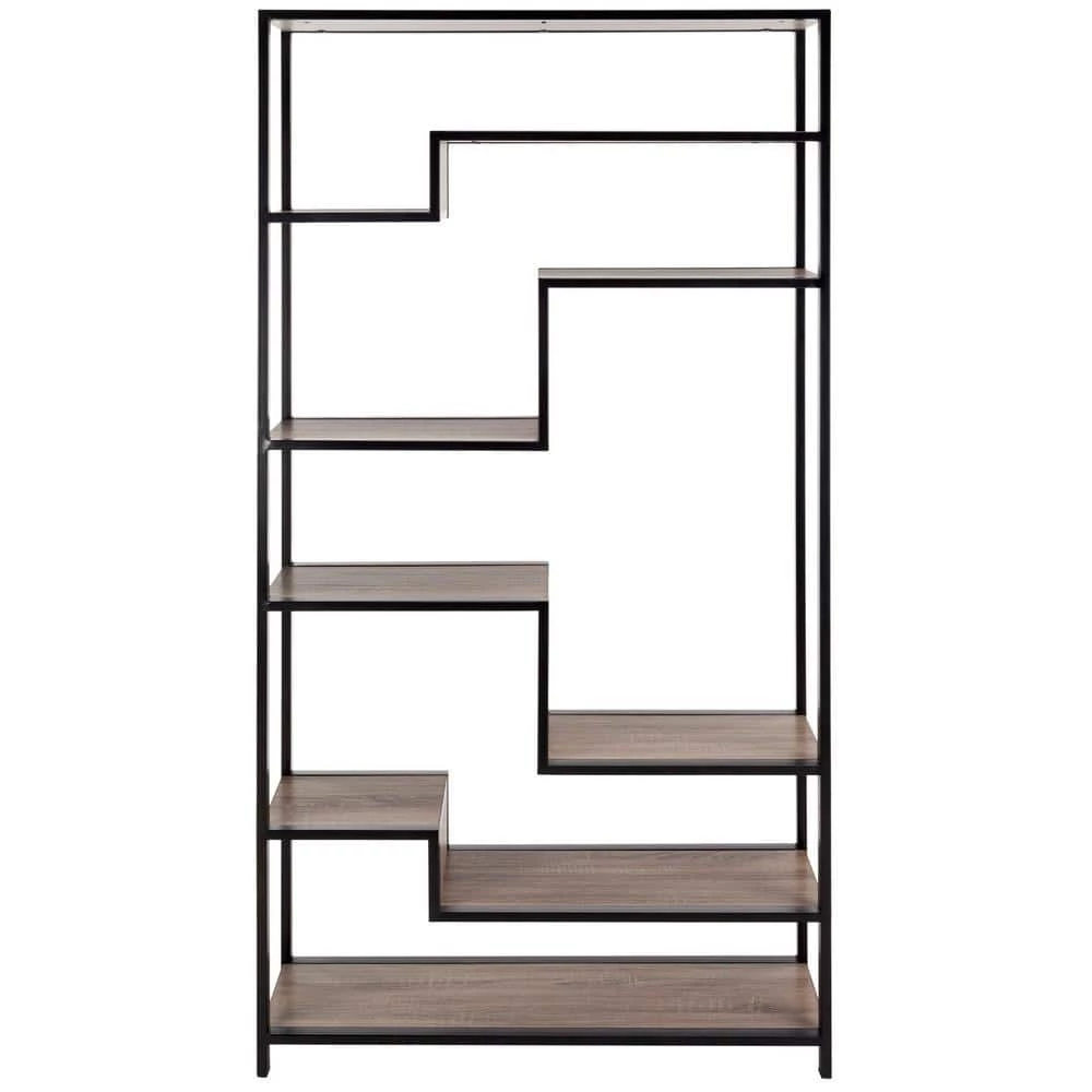 This designer mid-century tagre was created for the educated eye. Meticulously crafted with a smooth oak finish, its stylish geometric lines create a captivating focal point in the living room. Ideal for a grand display of treasures large and small.