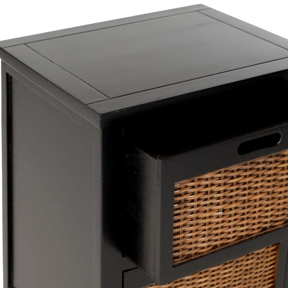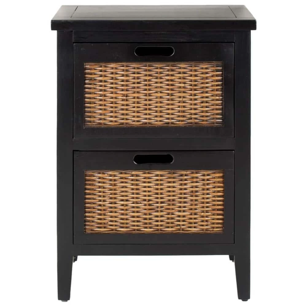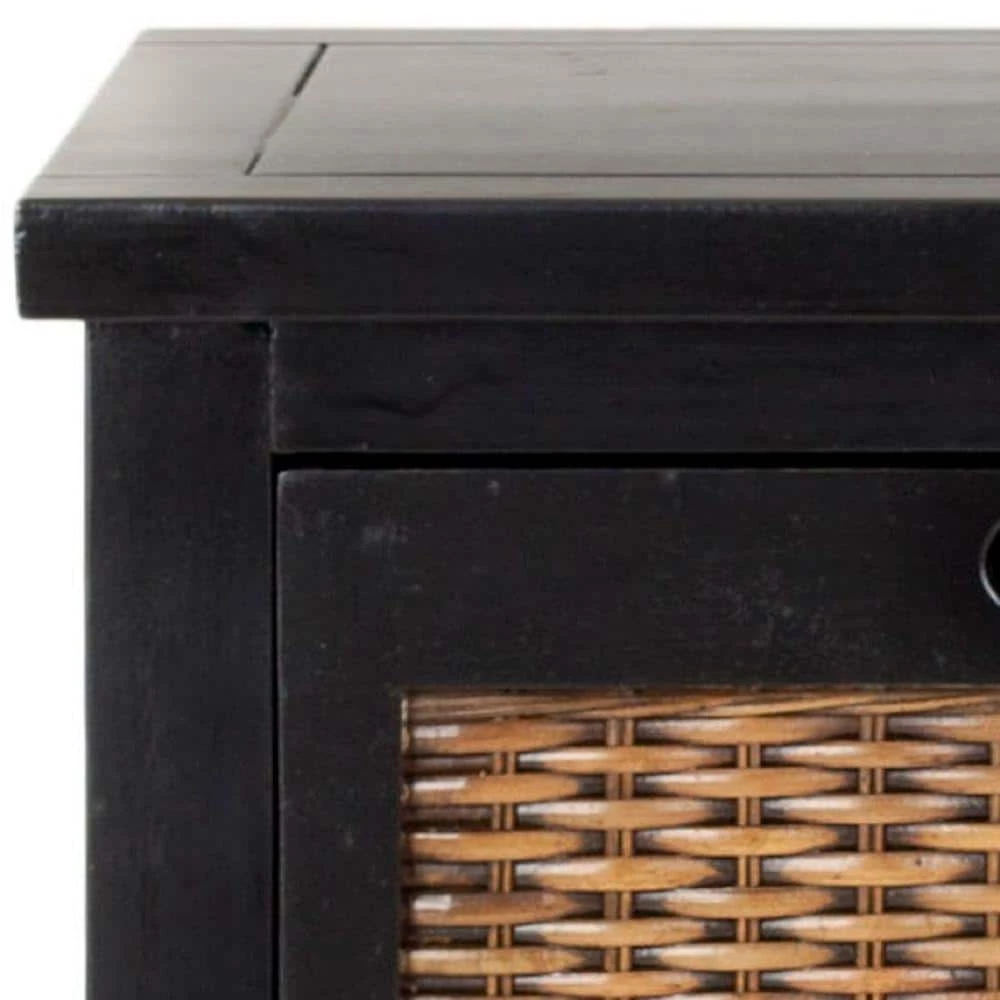 The Jonah end table takes its cues from the British Colonial style, where dark woods and exotic finishes evoke steamy ends in the Caribbean. Jonah features two roomy drawers with a woven panel and a rich black finish. It is a perfect companion for country homes, city apartments or formal manors.
