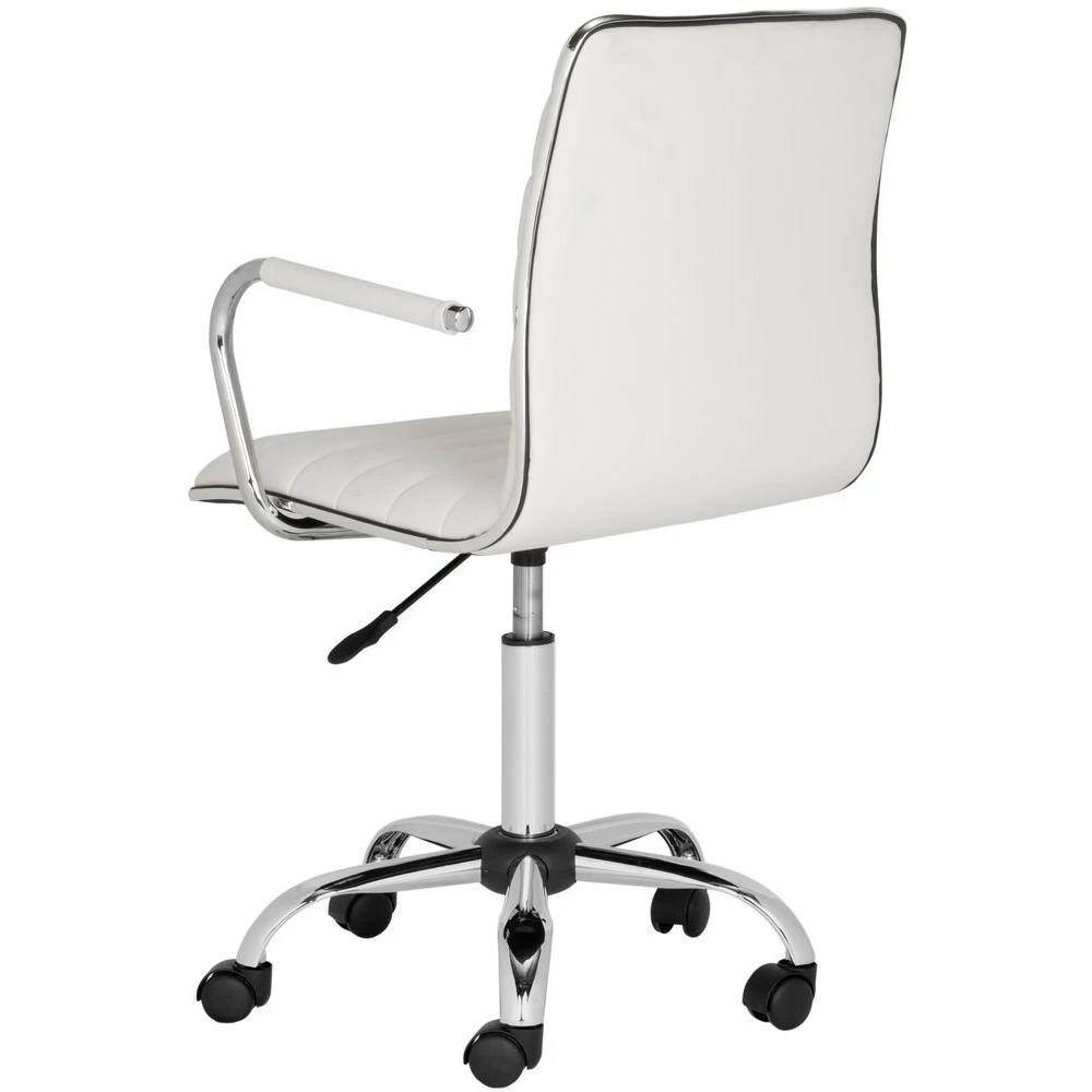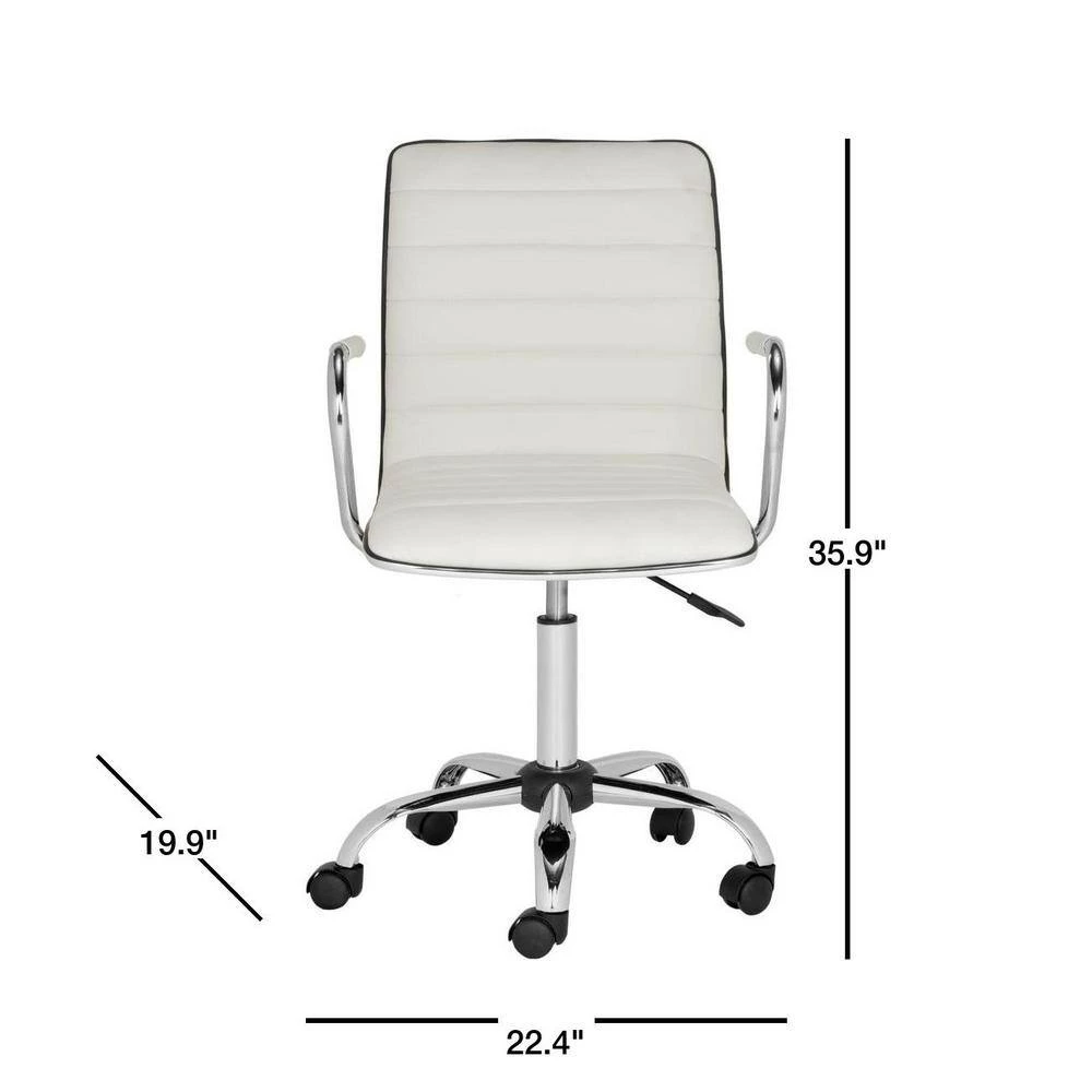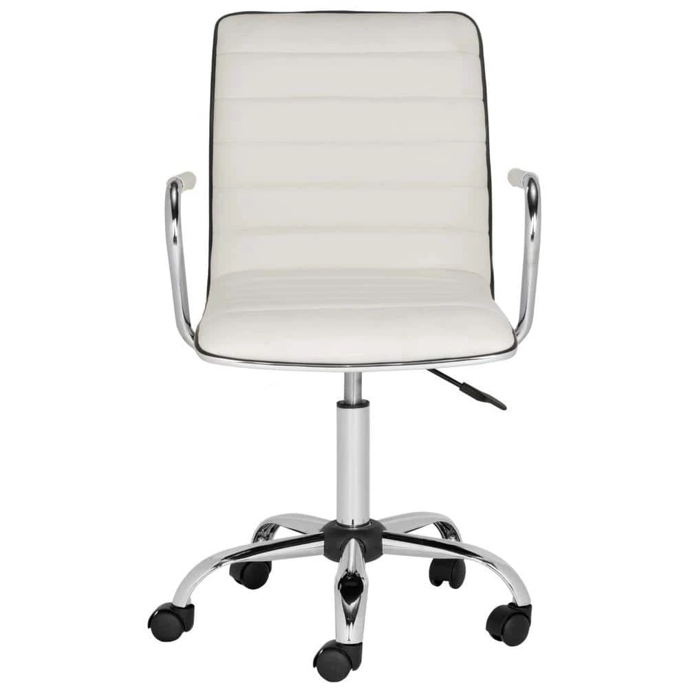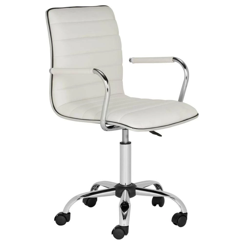 With its gently arched back-supporting seat that adjusts from 19.7 in. to 24 in., the Jonika Desk Chair is a must-have for the contemporary office. Constructed with white faux leather and chrome steel, it will be the toughest member of the team. Full arm support and sleek, shiny casters make the workplace just a bit more wonderful.