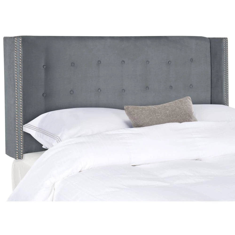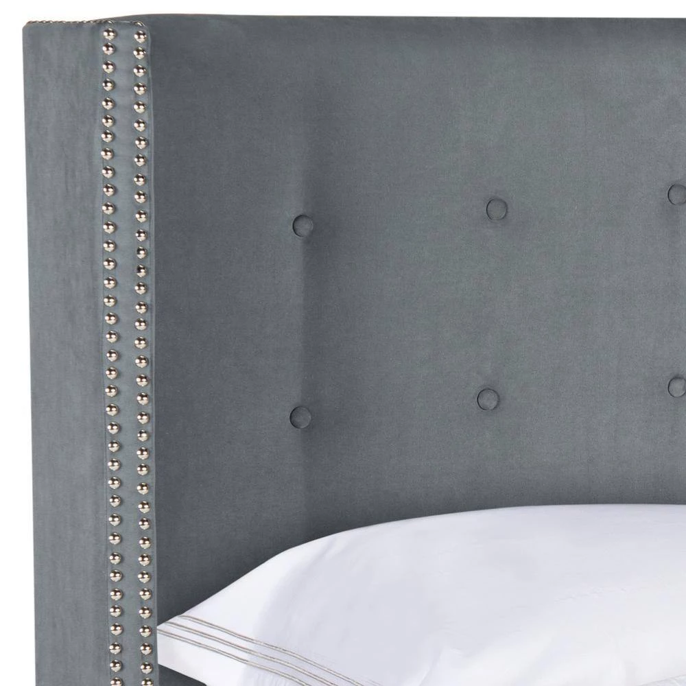 Designed to recreate the classic luxury of Romes most sought-after five-star hotel, this winged headboard is for the new elite. Upholstered in sumptuous grey velvet and finished with silver nail head trim, its tufted detail makes it a modern heirloom. This is a perfect addition to any home bedroom decor.