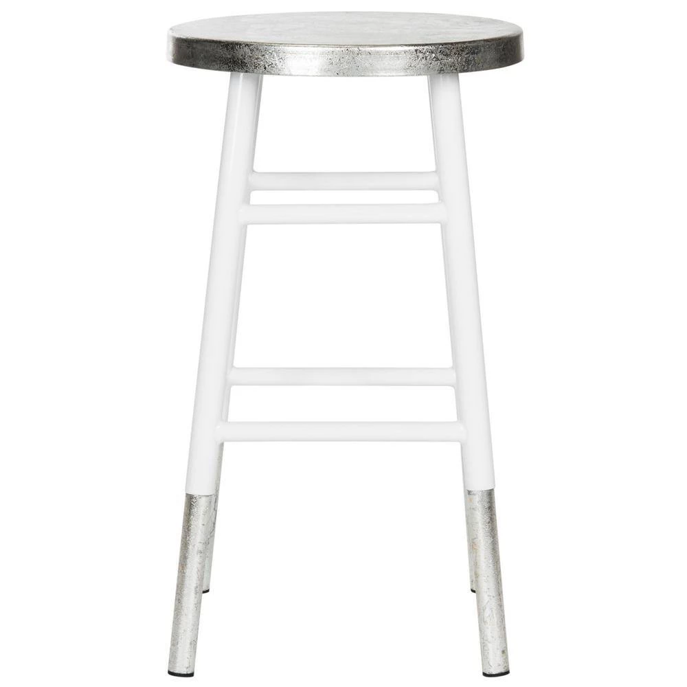 Elevate your kitchen decor bar or counter by using the Safavieh FOX Bar Stool. Featuring a modern style, this stool is great for revamping your decor. It has a backless design, which gives it a minimalist appearance and is also great since you can conveniently tuck the stool beneath the counter or bar. Designed from metal, it is resilient to everyday wear and tear, allowing it to last for years to come. This white stool beautifully contrasts with dark pieces of furniture for a monochromatic room decor. It features a foot rest, ensuring a more ergonomic design and promoting good alignment.