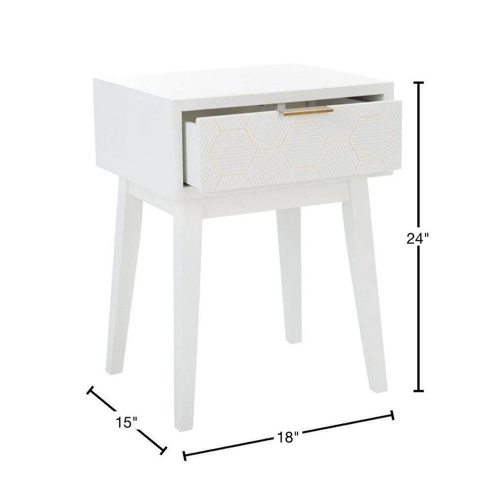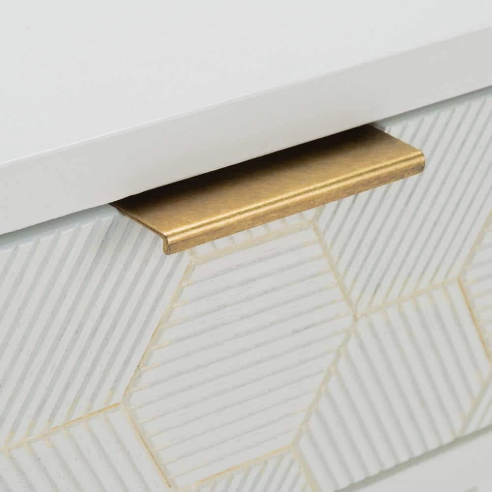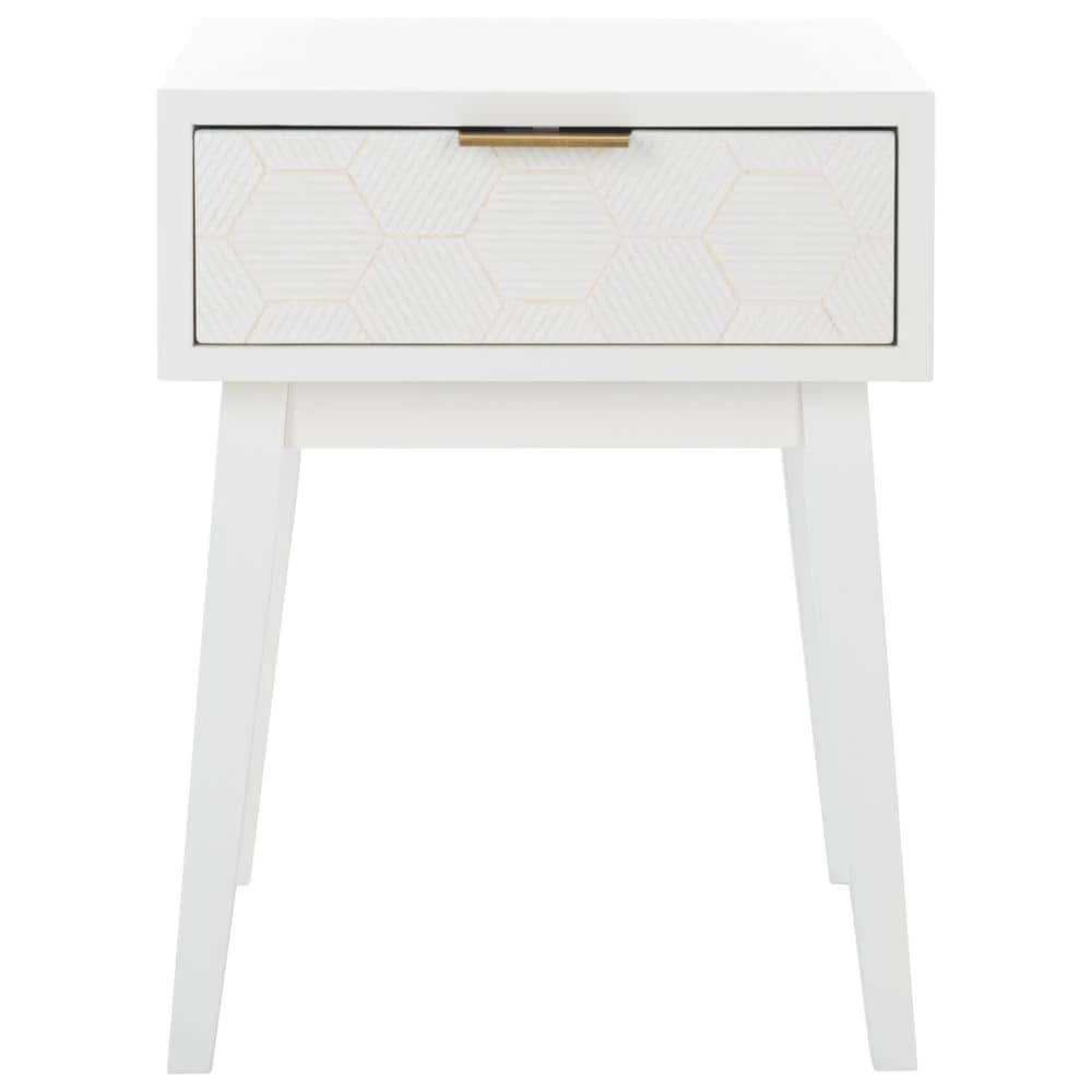Restyling Mid-Century classics for today’s contemporary decor, this Keya Accent Table masterfully embodies retro-modern fashion. Keya’s clean white frame is given an artistic update with the striated hexagon pattern on its single drawer and a sleek gold pull adds a glamorous touch. This is a great addition for your home whether you live in the country side or the busy city.