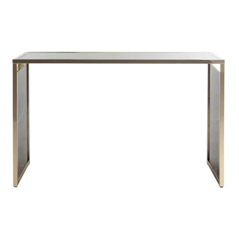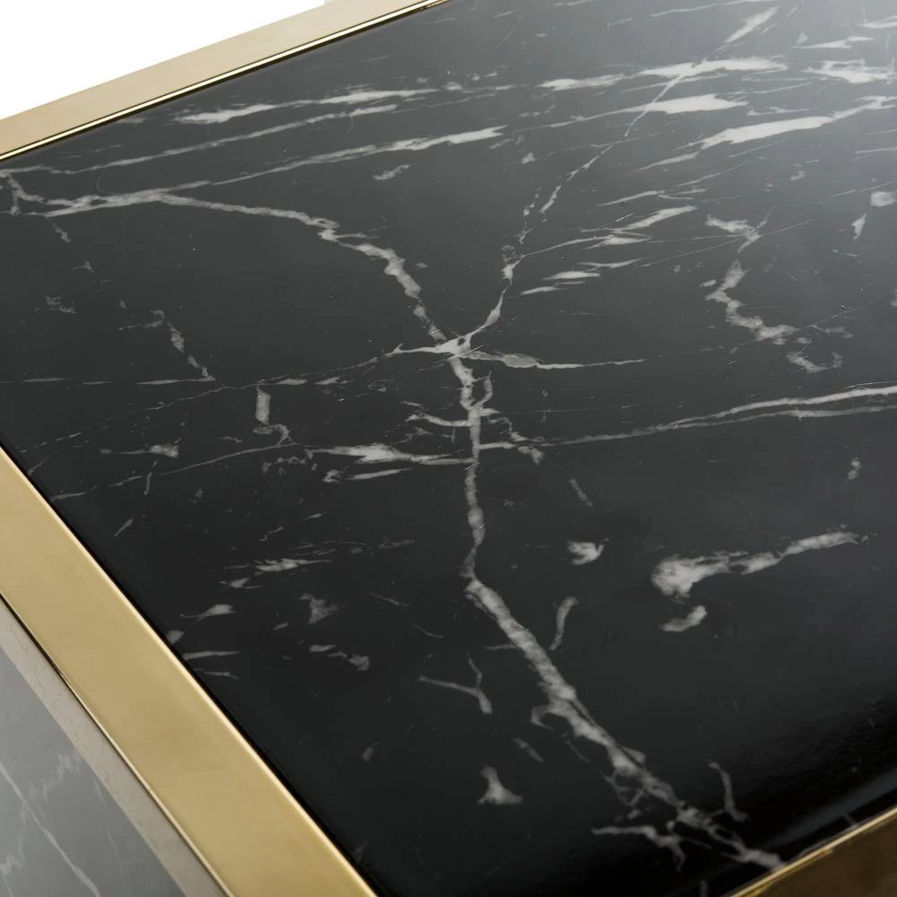 Bring sleek, sophisticated style to any interior with this contemporary console table. Crafted with paper veneer, its chic black and brass finishes lend depth and dimension to the living room. Ideal for displaying fine treasures or a tray of cocktails. Perfect accent for any home decor whether you live in the country side or the busy city.