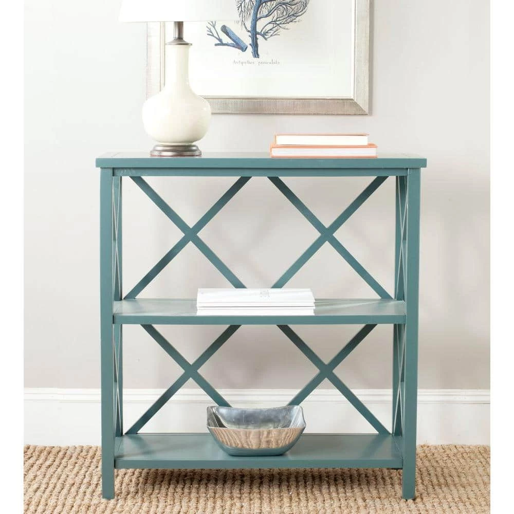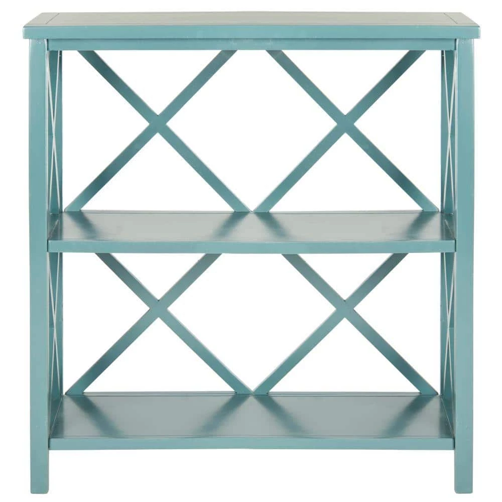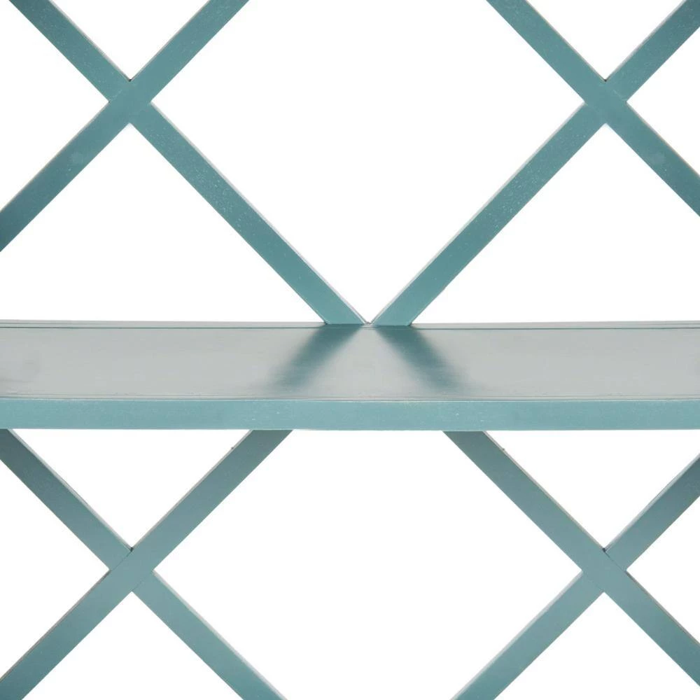 The Liam open book case, crafted from elm wood in a navy blue finish, proves a versatile, multi-functional workhorse. With its light-weight stature and X-shaped back, this bookcase is ideal for country and beach settings in rooms throughout the home. This is a great addition to your home whether in the country side or busy city.