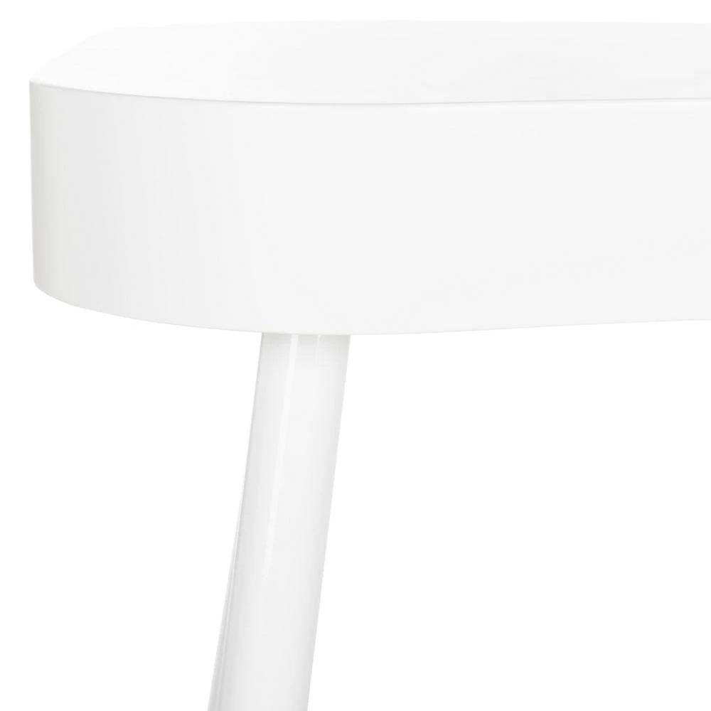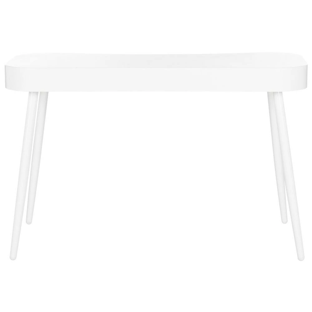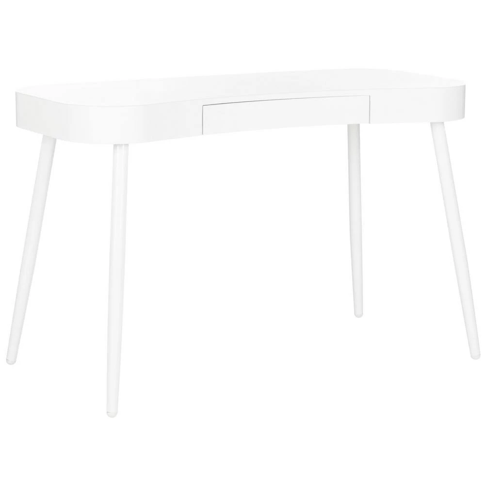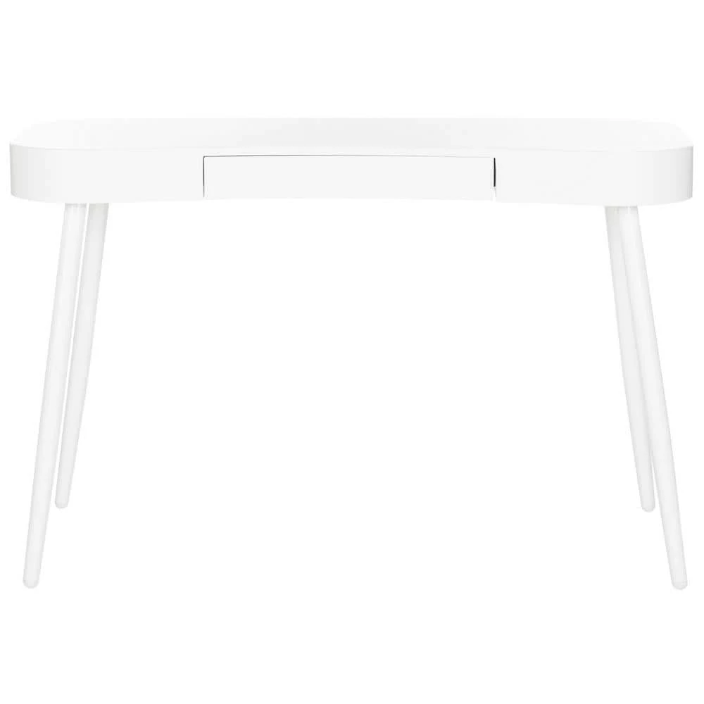 Create calm amidst the office chaos with this contemporary desk. Its fresh organic style blends gentle curves with a smooth surface and a smart hidden drawer for a clutter-free workspace. A matte white palette and tubular metal legs make it a classic.