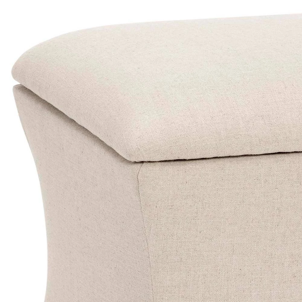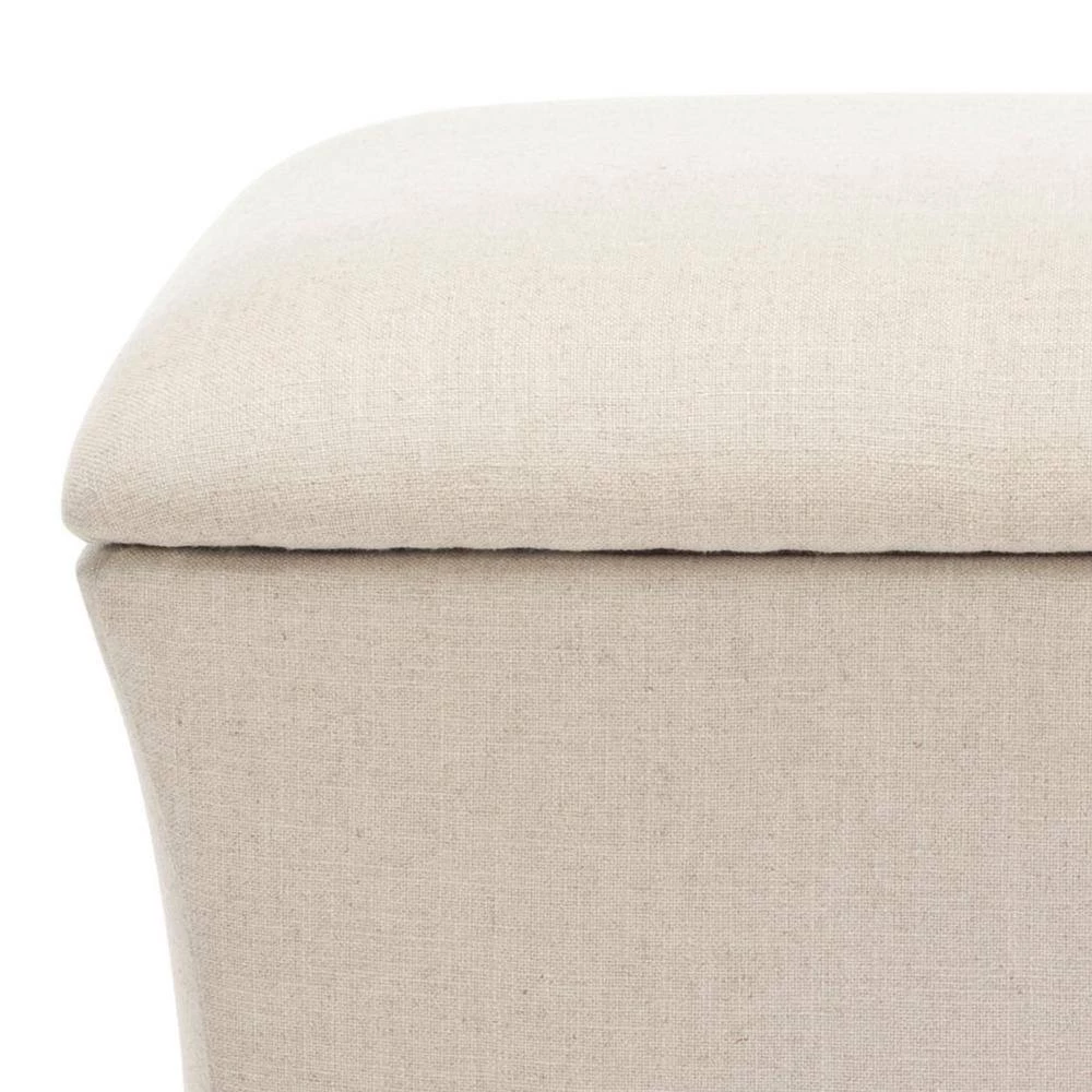 The Safavieh Hudson Ottomans Ottoman is a versatile and stylish piece of furniture that can coordinate well with the surrounding furniture. This ottoman is made of wood, providing performance and visual appeal. Featuring a modern look, it is excellent for beautifully complementing your home. It is built with a footrest, ensuring total comfort by reducing pressure on your legs. Designed with a storage area, it is ideal for organizing your towels, linens, and other belongings.