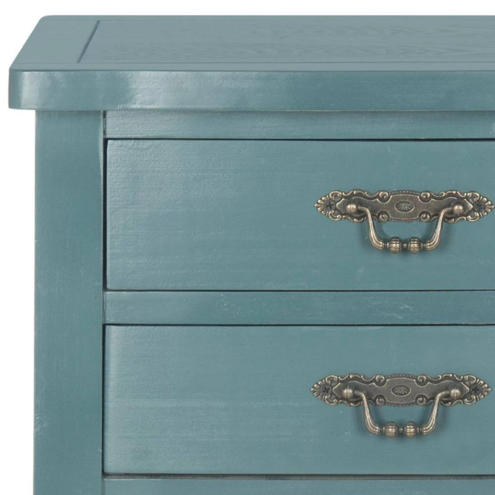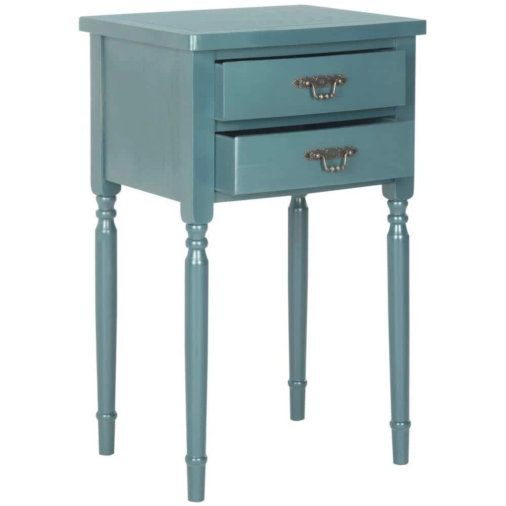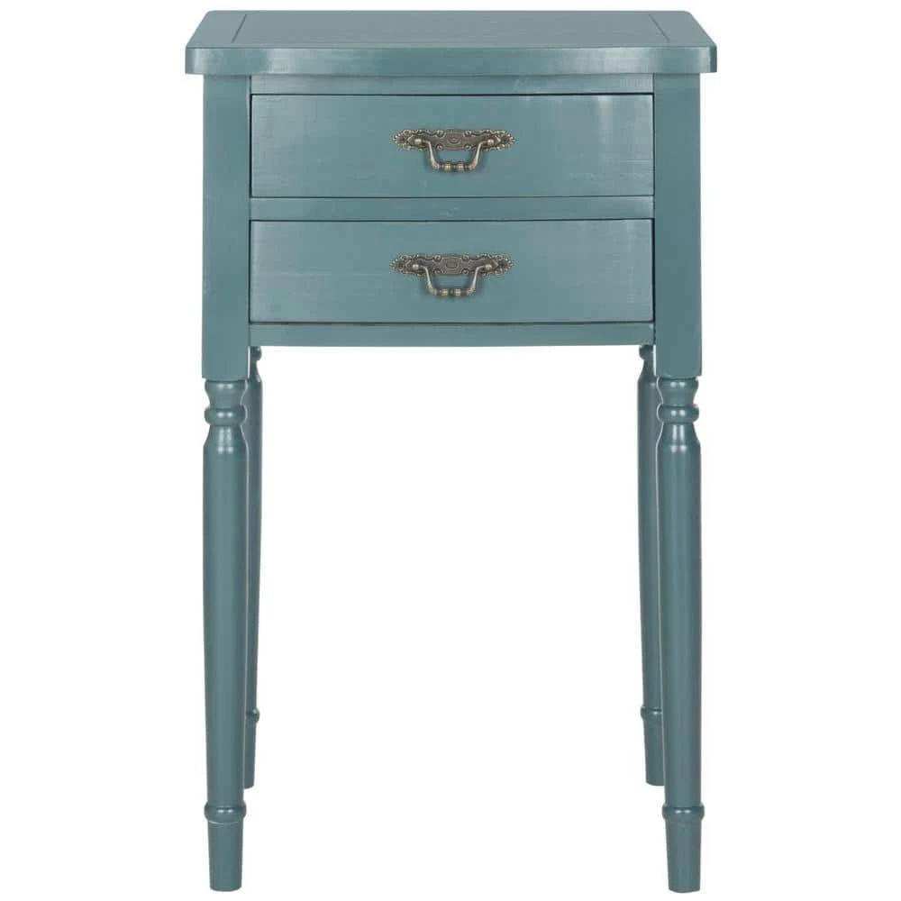 Beautifully complete the design of any room with the Safavieh American Home End Table. This end table has a modern style, which will add a contemporary piece to your room that fits with any living space. With a wooden construction, it is a decor staple that conveys elegance and charm. It has two drawers, allowing you to hide away your trinkets and eye sores when your guests arrive.