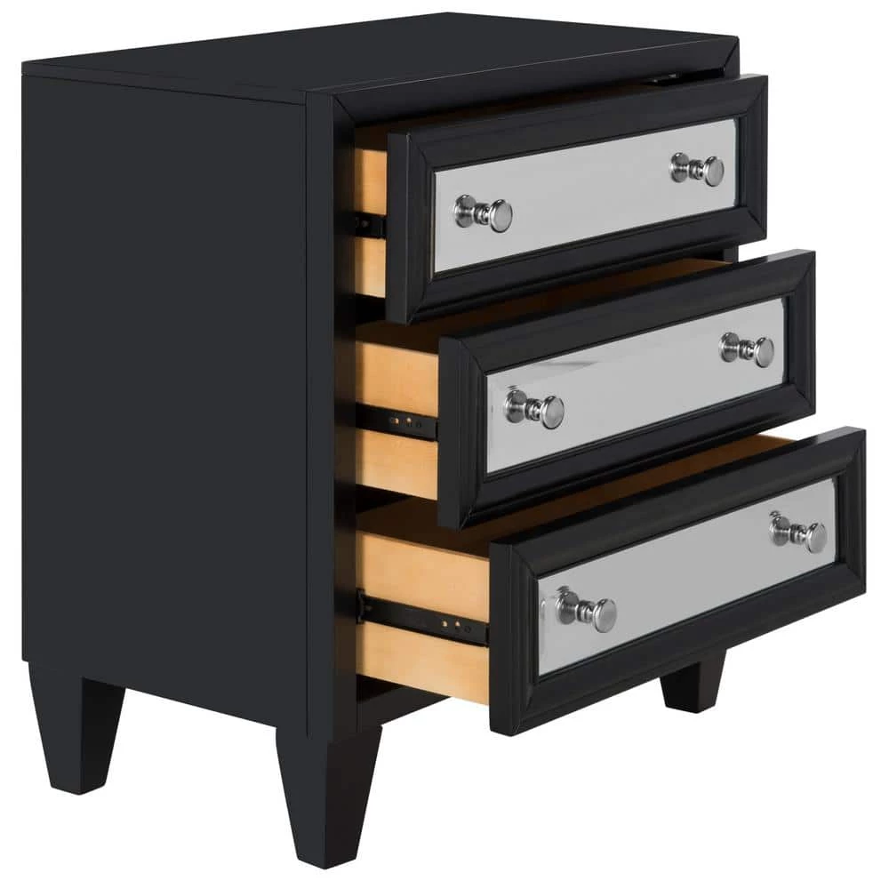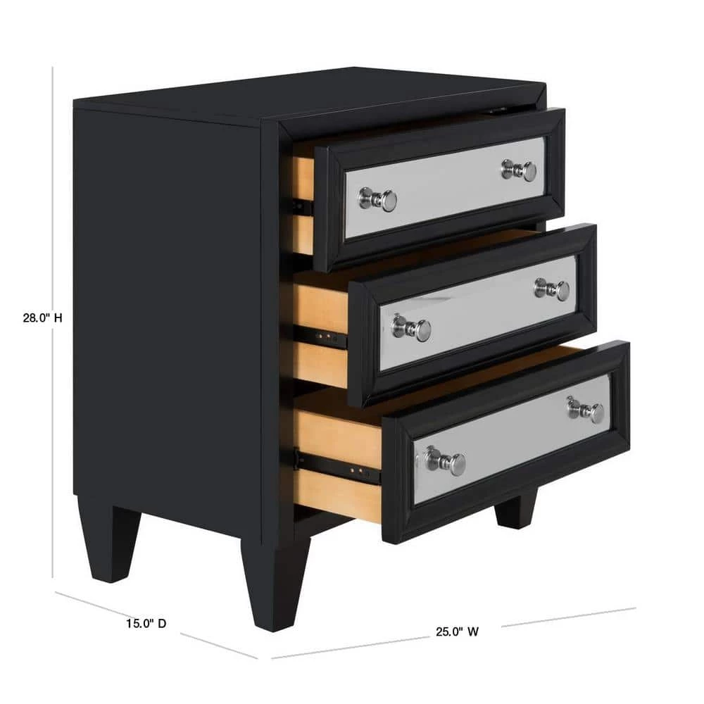This 3-drawer chest is effortlessly chic. Designed with style and luxury, its classic black finish and mirrored panels complement any living room. Beloved for its discreet, ample storage, designers often use in pairs. A beautiful addition to your country home or modern house.