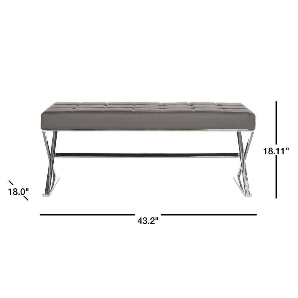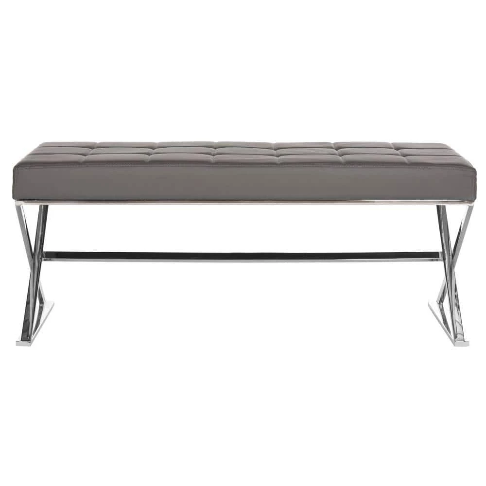 Inspired by the playful style of the Italian Memphis movement, this brilliant gray ottoman in bicast leather adds instant warmth and character to any modern space. Polished stainless steel legs make it a contemporary classic. It is a perfect companion for country homes, city apartments or formal manors.