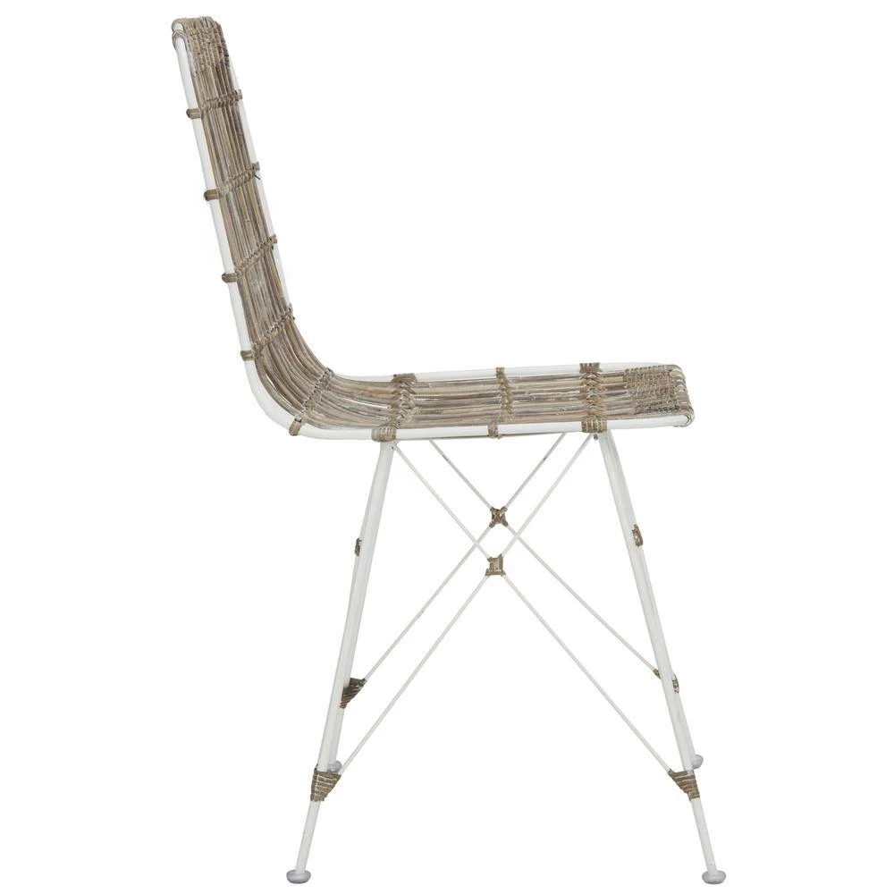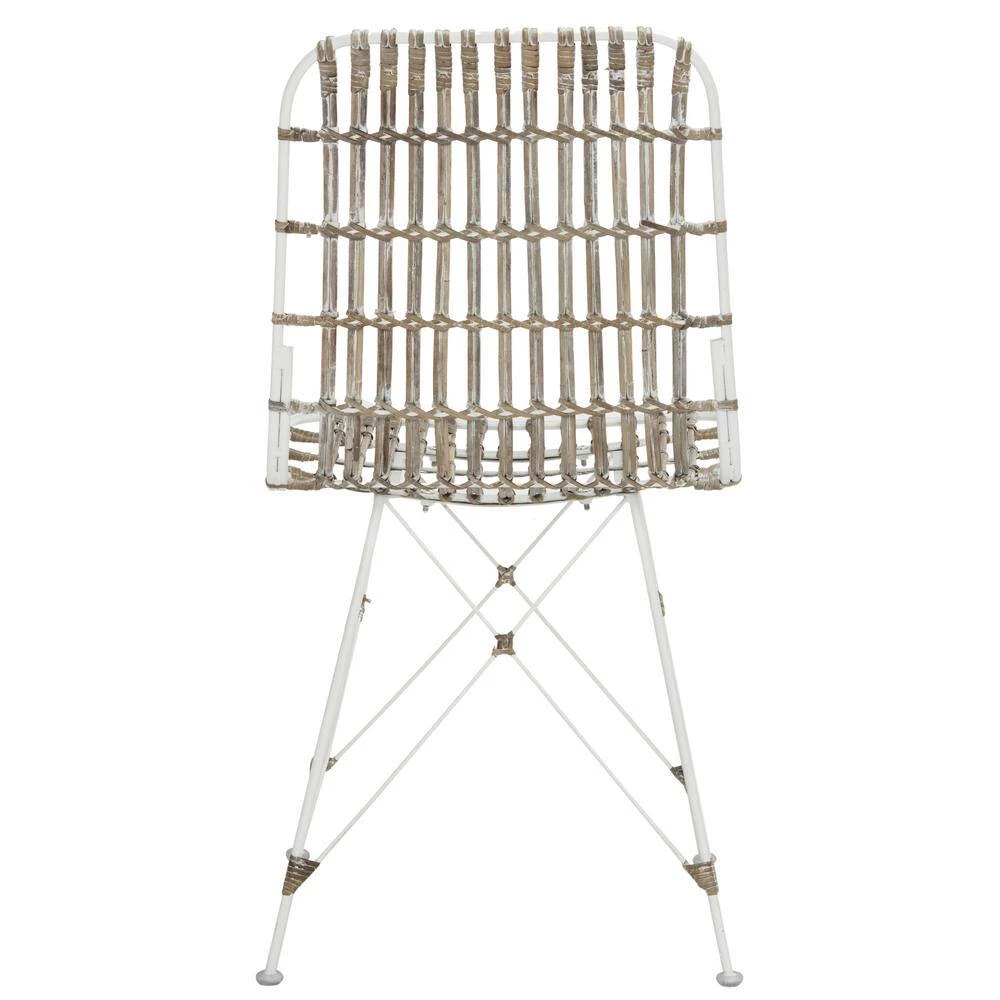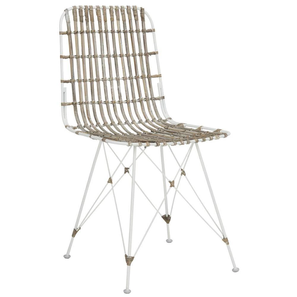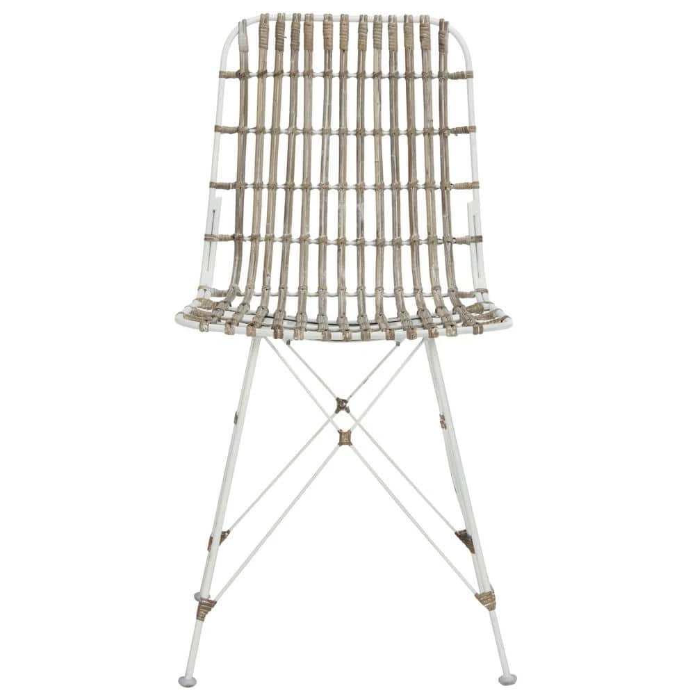 Crafted with fine, graphically sculpted lines, this modern white wash wicker dining chair was designed to uphold the rigorous aesthetic standards of the contemporary host. Its sculptural metal legs and chic vintage style lend character to any soiree. Whether country-chic or metro-mod, a great addition to any home.