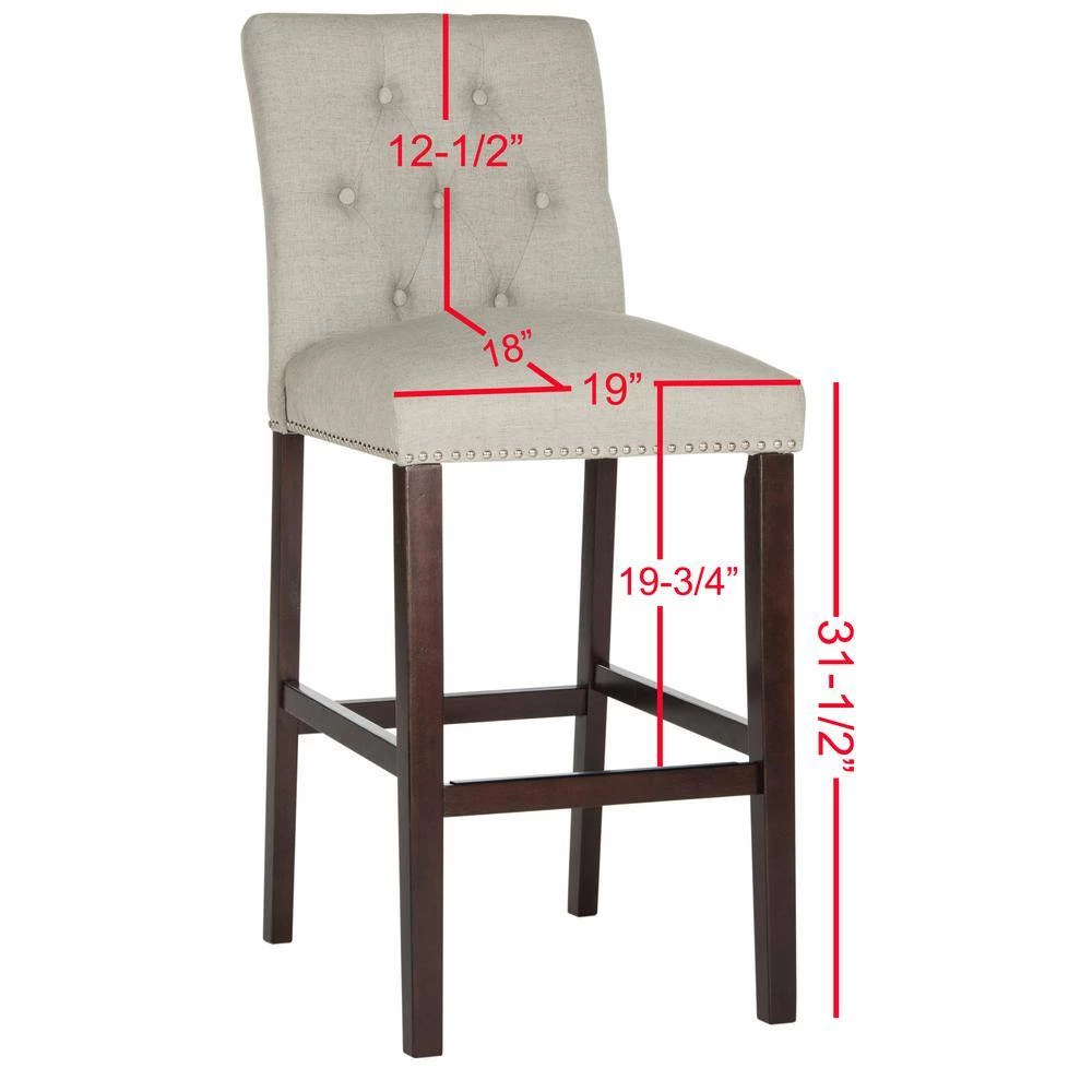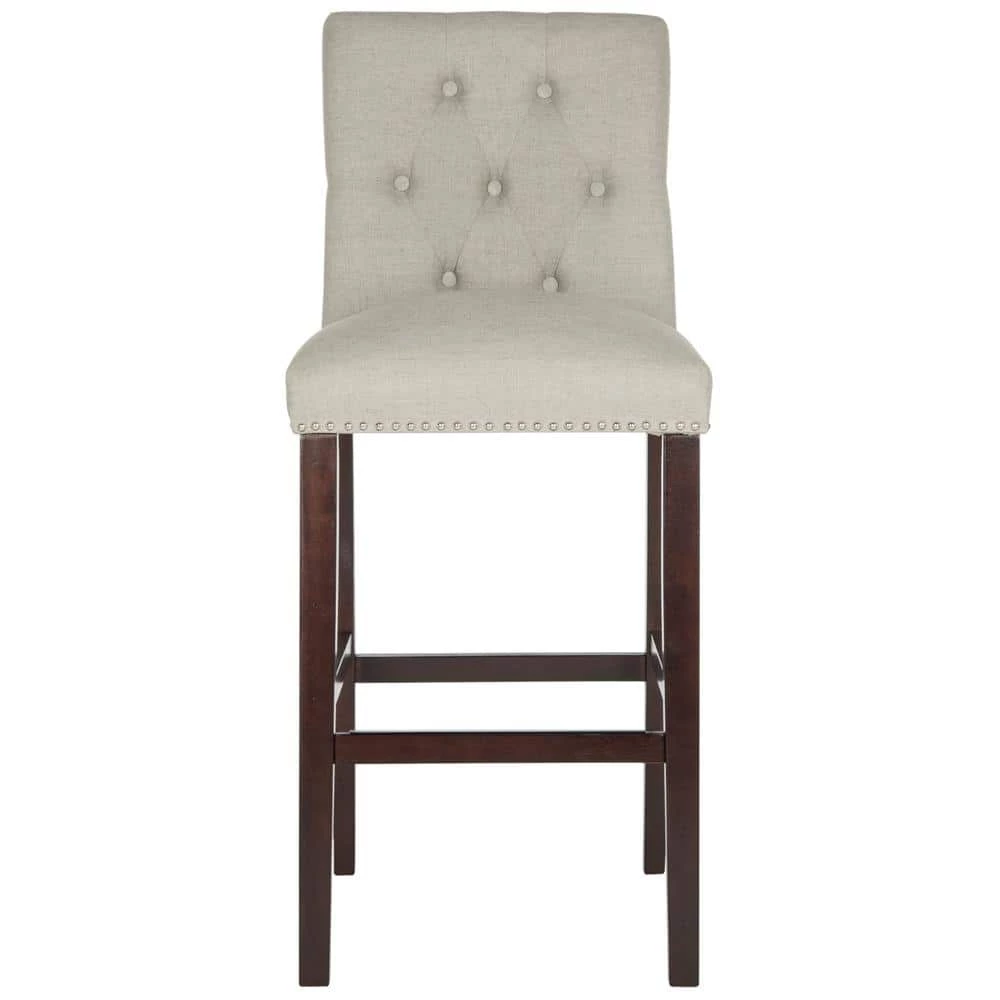 Elevate the taste level in any room with these posh modern barstools (set of 2). Their plush, tufted light grey upholstery and sturdy espresso legs make them ideal for savoring petit dejeuner in the morning or a glass of wine after the sun goes down. Whether country-chic or metro-mod, a great addition to any home.