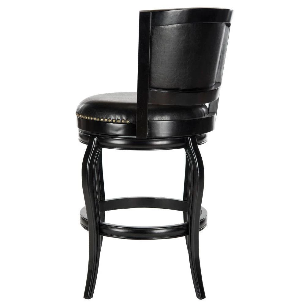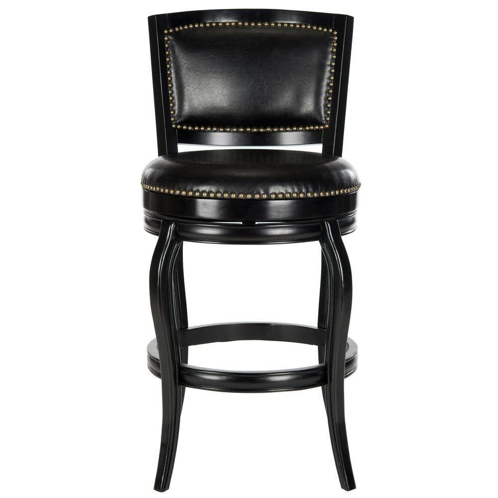 Add a sleek tone to your kitchen counter with the Safavieh FOX Bar Stool. This stool has an armless design, so you can push it under the counter or bar. Featuring a classic style, it is easy to match with all of your existing furniture. It features a full back, providing a lot of support, which makes it comfortable for sitting for an extended period of time. Featuring a wooden frame, this stool looks excellent in pretty much any setting since it has a timeless feel. It has a faux leather seat, which is stylish and has the appearance of genuine leather. It has nailhead trim for stylish detailing.