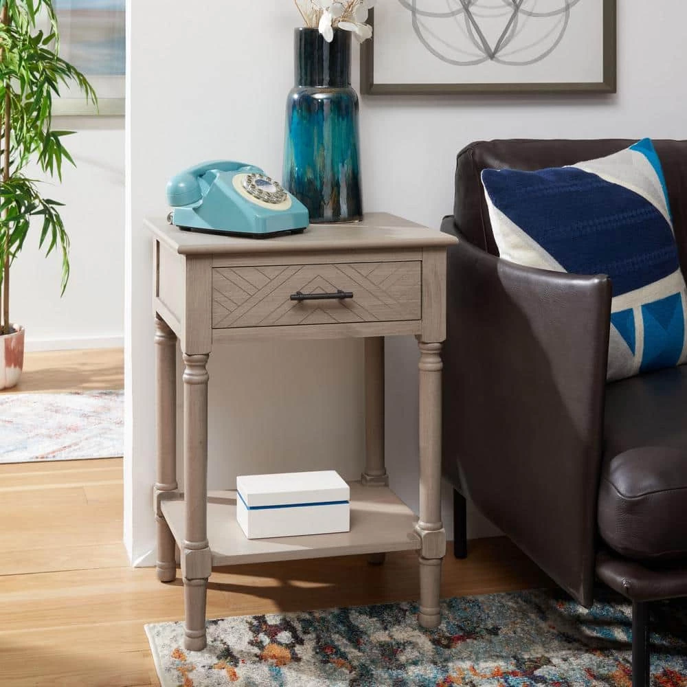 Understated yet sophisticated, this Peyton Accent Table is ideal for today’s classic contemporary decor. Peyton’s timeless turned legs and carved wooden accents are given a modern touch with the oversized herringbone pattern on its drawer, while a soft greige finish is perfect for any room’s color scheme. This is a great addition for your home whether you live in the country side or the busy city.