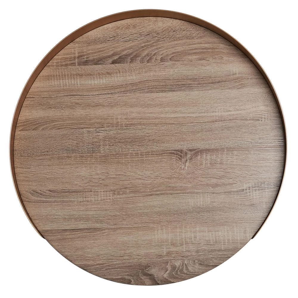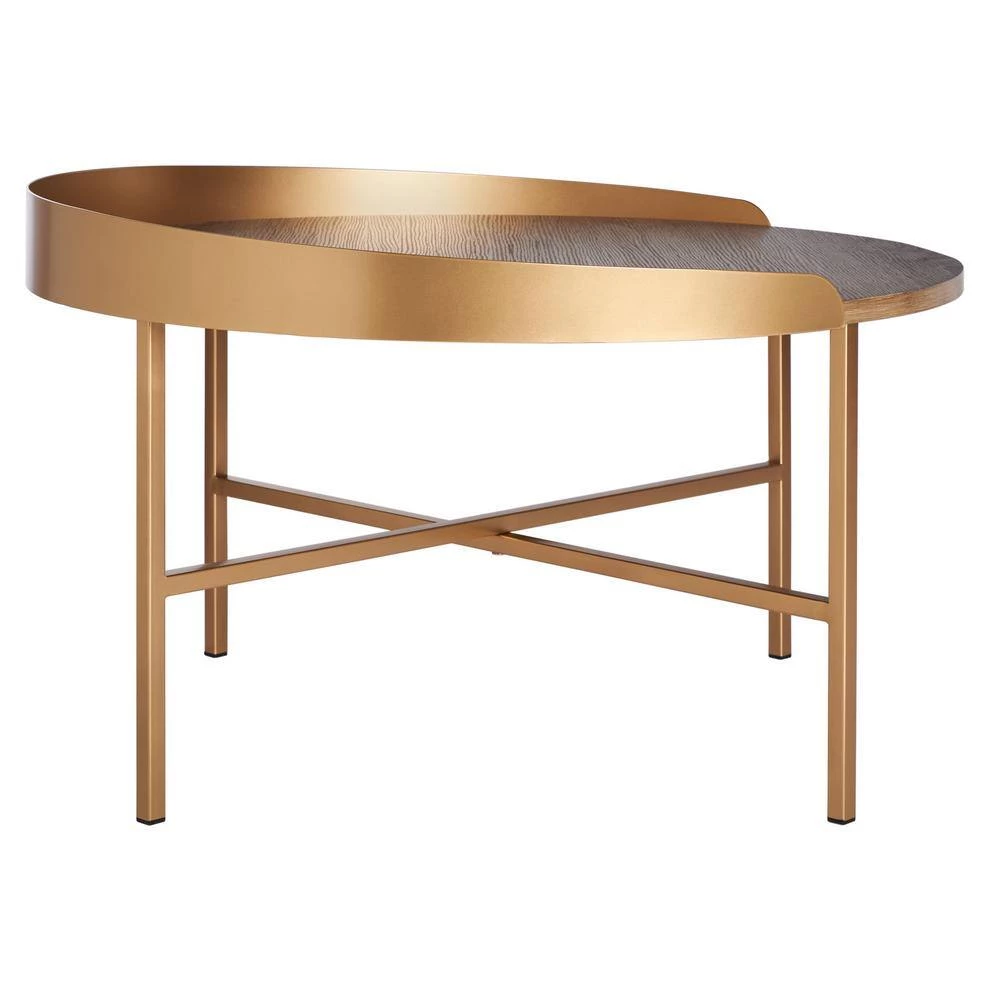 An icon of country charm meets modern mystique in this Prague Round Coffee Table, pairing stylish contemporary geometry with wood’s organic allure. Prague’s gold finished, raised tapered edges bring a chic sense of depth to living room decor and a crossed ‘X’ base highlights its rustic roots. Whether country-chic or metro-mod, a great addition to any home.
