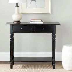 Rosemary 38 in. 2-Drawer Black Wood Console Table by SAFAVIEH