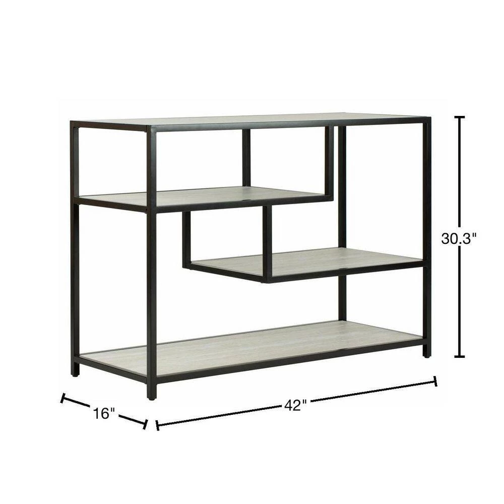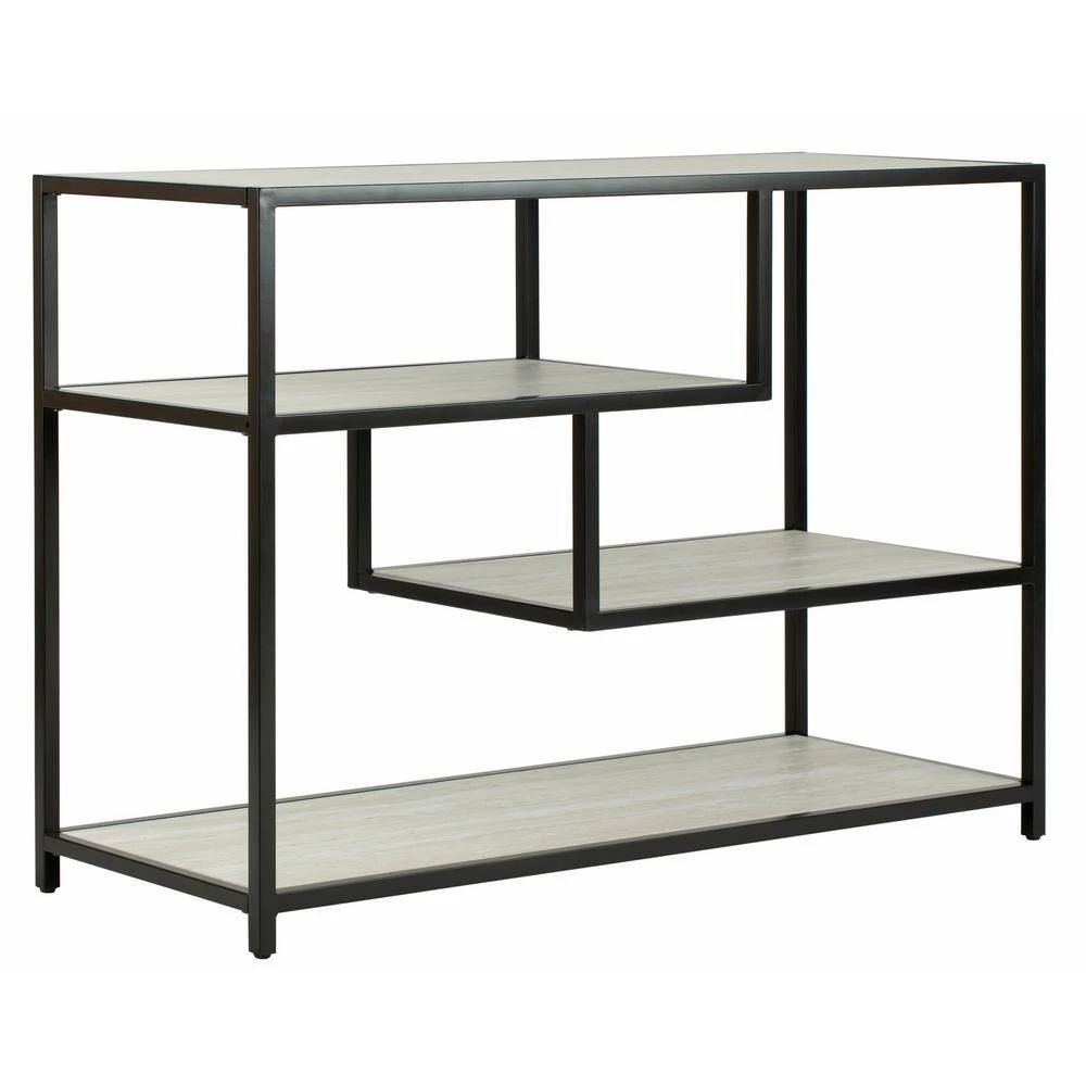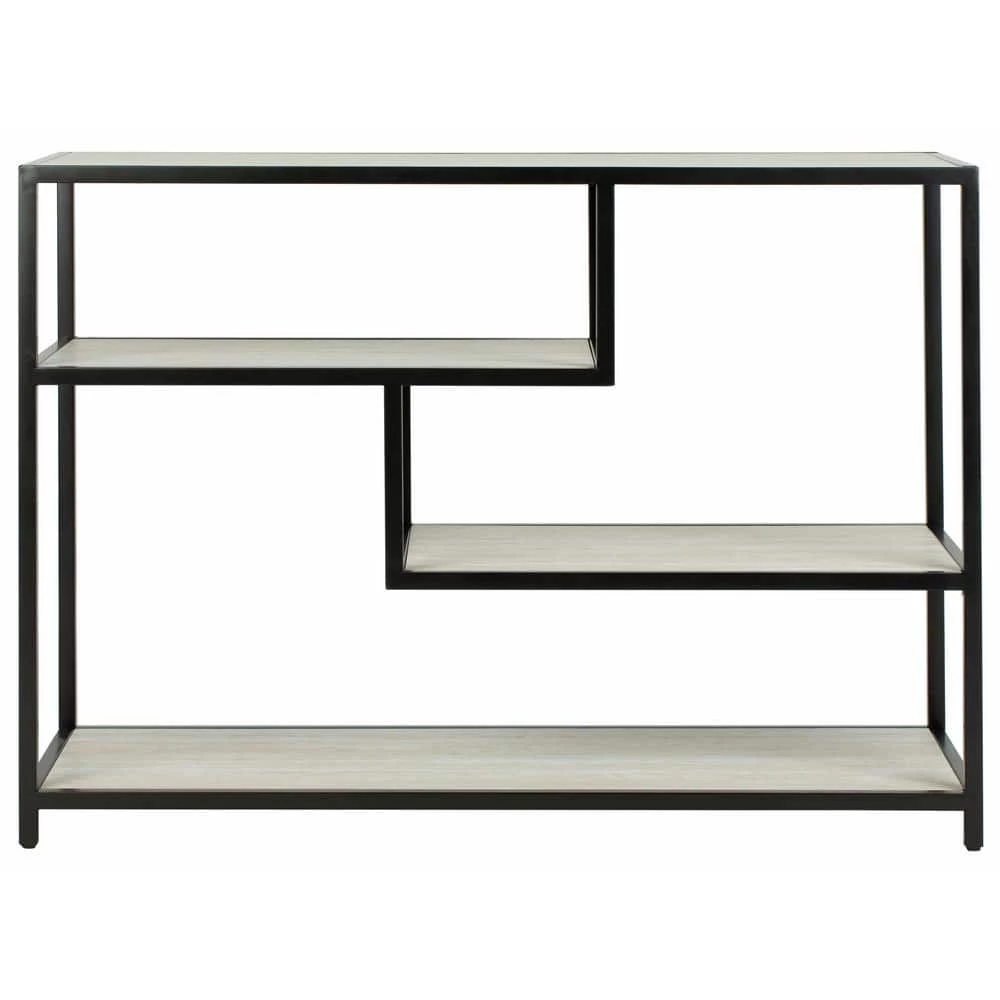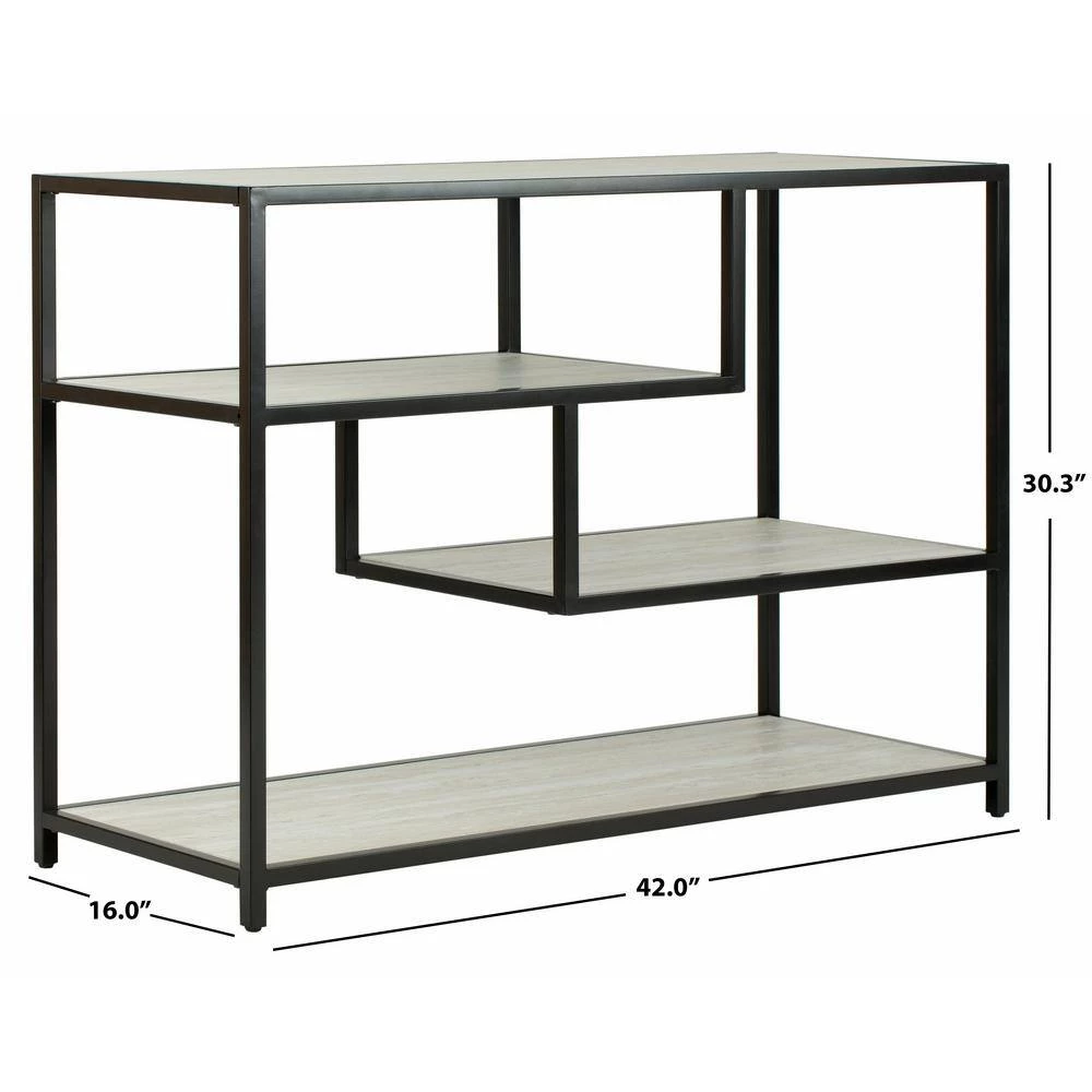 Inspired by the bold style of modern art and architecture, this contemporary geometric console table stores and displays objects with depth and dimension. Its beige and black finish highlights its clean lines and complements any living room decor. Perfect accent for any home decor whether you live in the country side or the busy city.