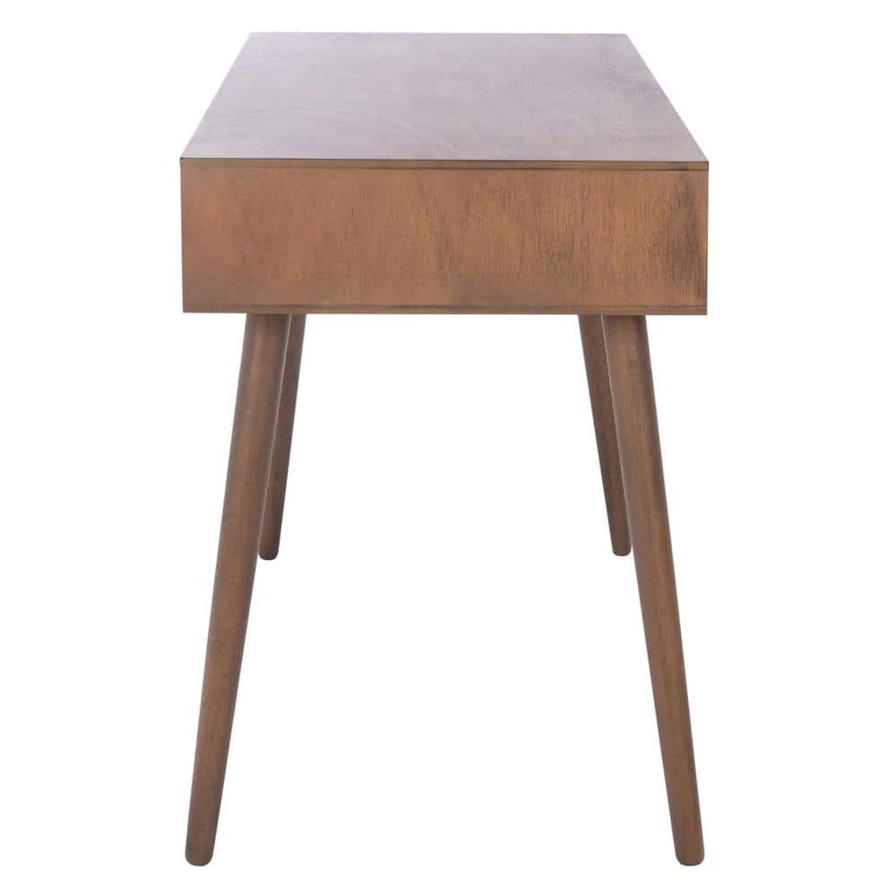 This Remy Writing Desk upgrades any office with a hint of Mid Century charm. Remy’s splayed legs provide a subtle sense of depth and motion that revitalizes workspace decor, and its open shelf and single drawer are perfect for storing your 9 to 5 essentials. A rich brown finish completes the look. This is a great addition for your home whether you live in the country side or the busy city.