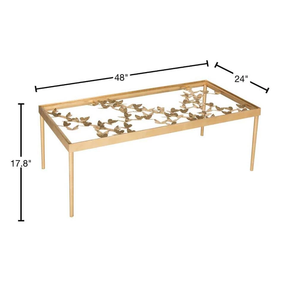 This butterfly coffee table was inspired by a handcrafted piece created by master goldsmiths for an Italian princess’ Tuscan estate. Ethereal and timeless, this modern heirloom’s antique gold finish and sculptural detail bring visual splendor to any decor. Whether country-chic or metro-mod, a great addition to any home.