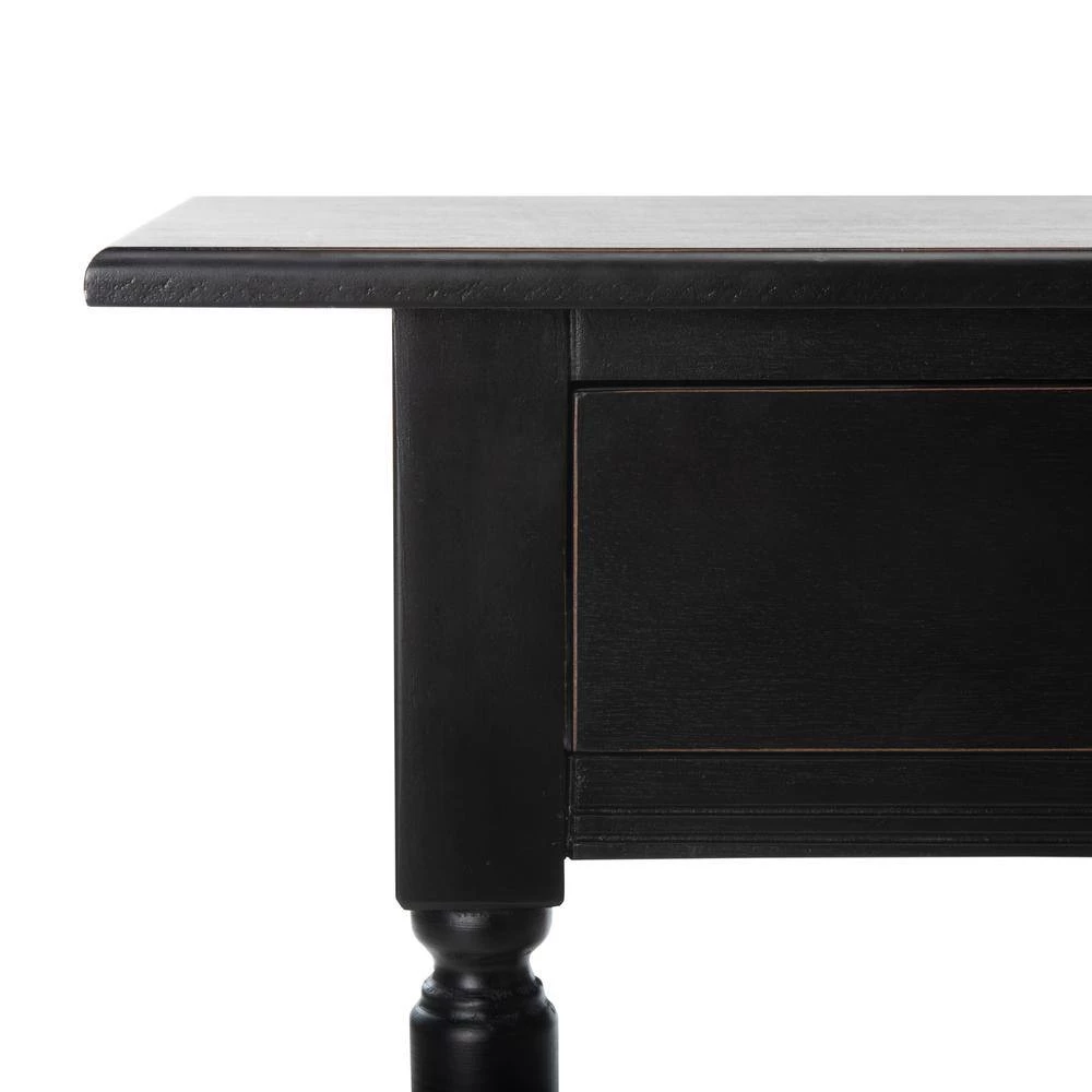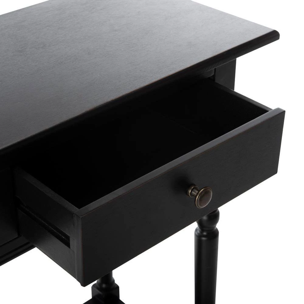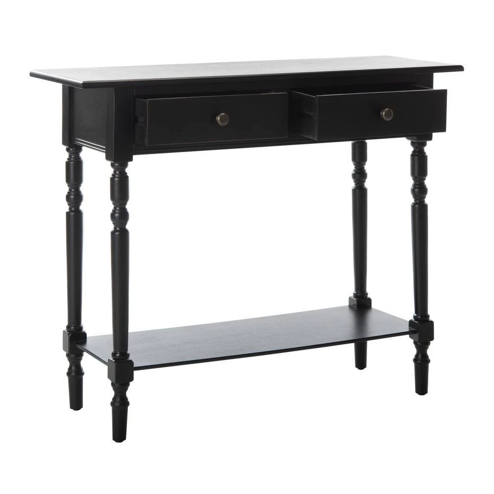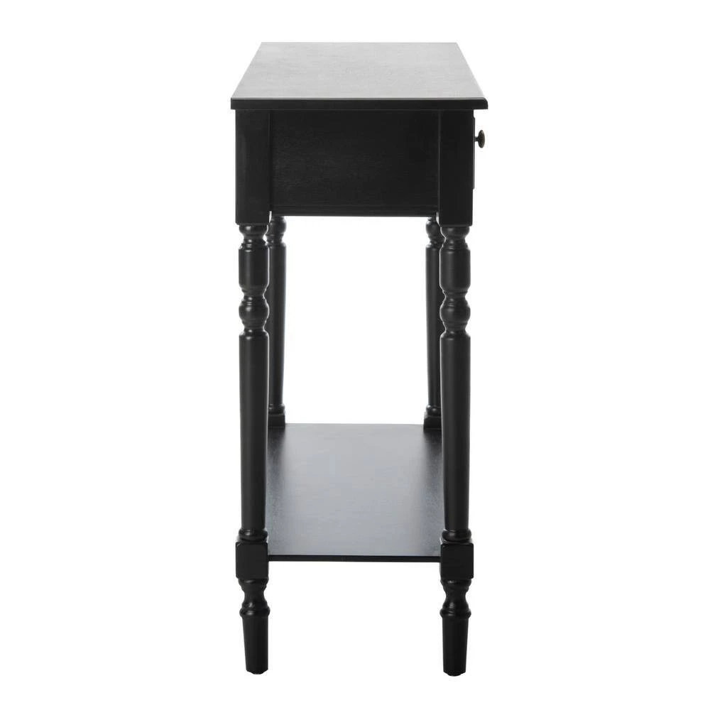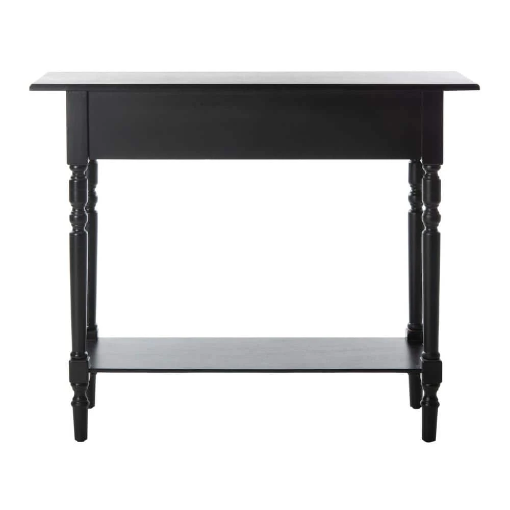 The Rosemary Console, in a distressed black finish, evokes craftsman style with its clean lines and practical storage. Crafted from pine with two drawers and a bottom shelf, this console will enhance casual dens, front entry, or bedrooms with its refined farmhouse charm. This is a great addition for your home whether you live in the country side or the busy city.