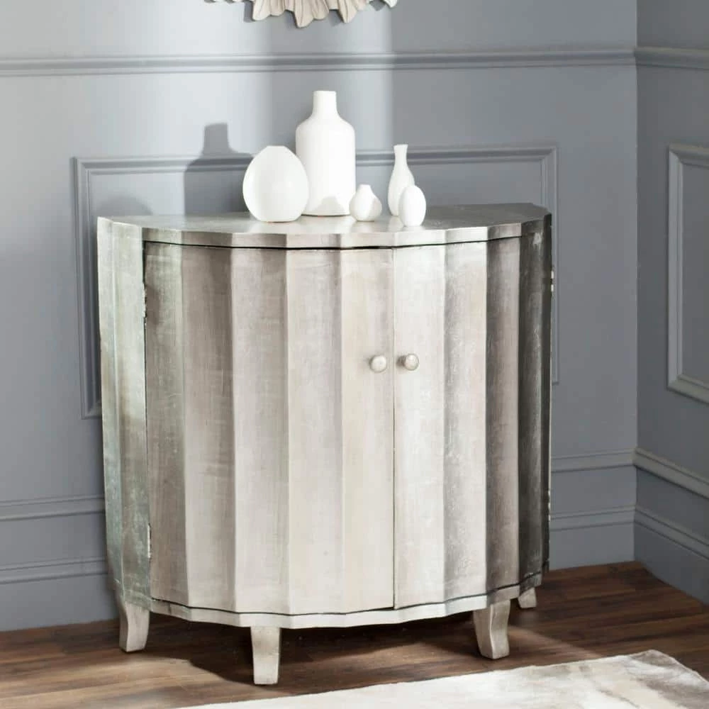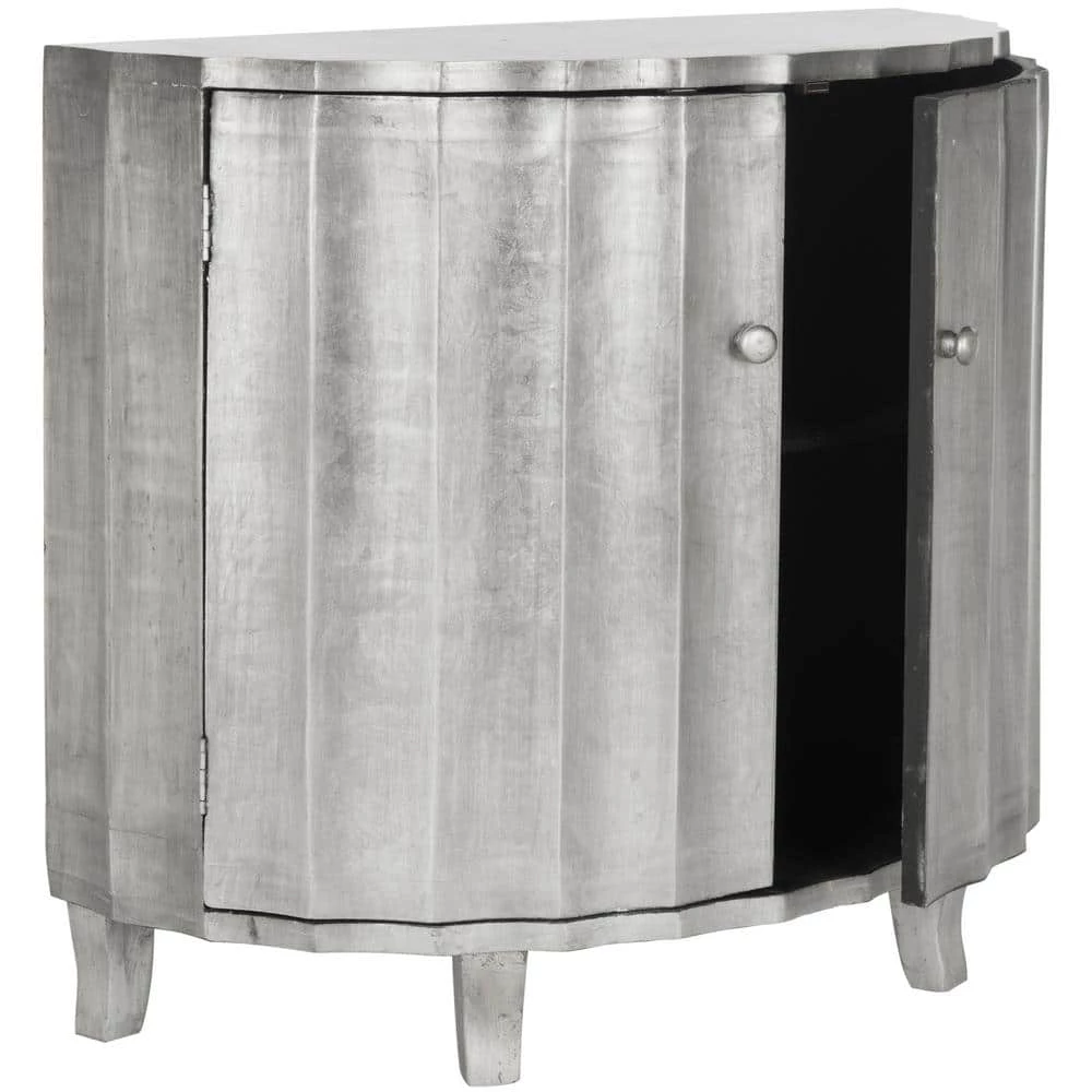 Elegant and sophisticated, the Rutherford Demilune Cabinet is exquisitely detailed with fluted double doors and decorator pulls. Finished in silver, Rutherford dresses up a bedroom, hall, or living room while providing ample storage space. Whether country-chic or metro-mod, a great addition to any home.
