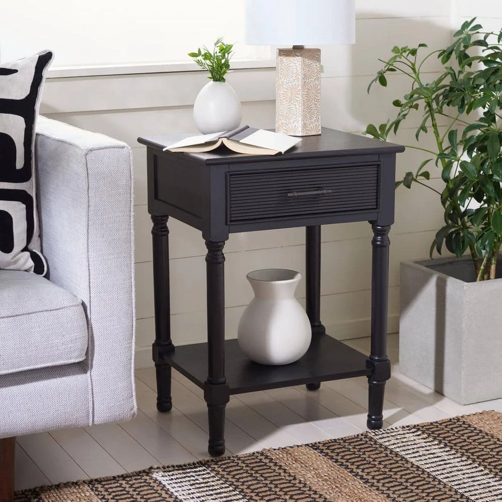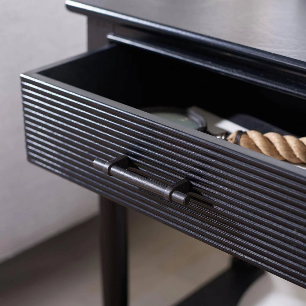 Tradition meets today in this Ryder Accent Table. Ryder’s classically designed frame is upgraded with fashion forward flair in the straited details on its single drawer, while a sleek black finish brings additional decorative depth to any room. This is a great addition for your home whether you live in the country side or the busy city.