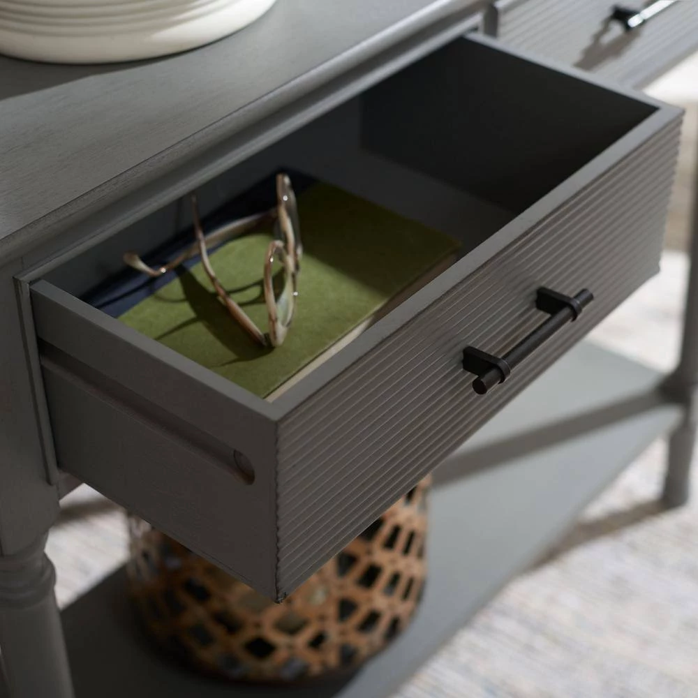 This Ryder Console Table brings a touch of tradition to today’s contemporary decor. A classically designed frame is upgraded with fashion forward flair in the striated details on Ryder’s 2-drawers, while the distressed grey finish gives additional decorative depth to the hall or entryway. This is a great addition for your home whether you live in the country side or the busy city.