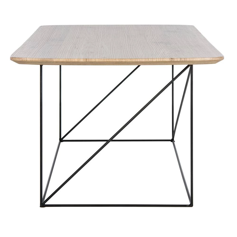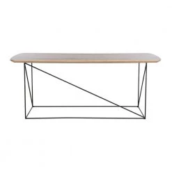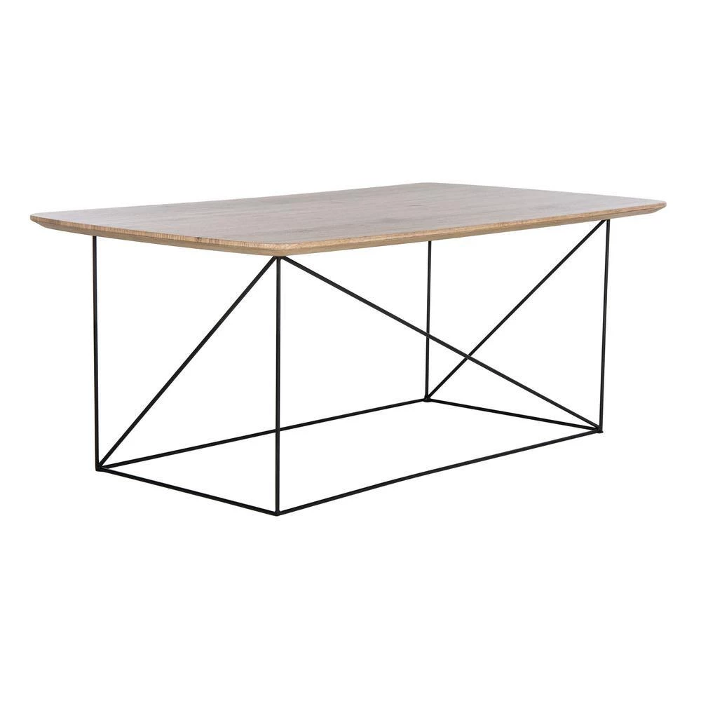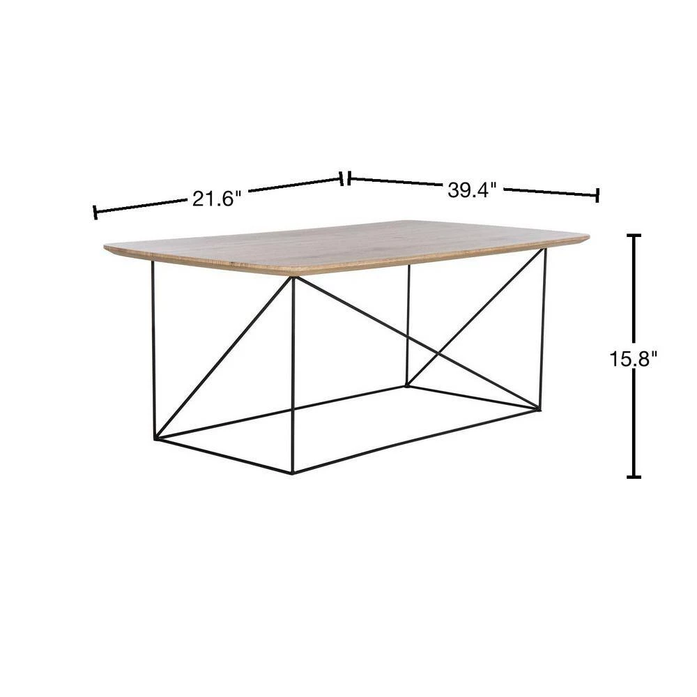 The luxurious Scandinavian style of this contemporary rectangle coffee table transforms any living room. Crafted to showcase the bold geometric design of its black iron legs, the softly rounded edges of its taupe brown pine and black wood top make it a classic. Whether country-chic or metro-mod, a great addition to any home.
