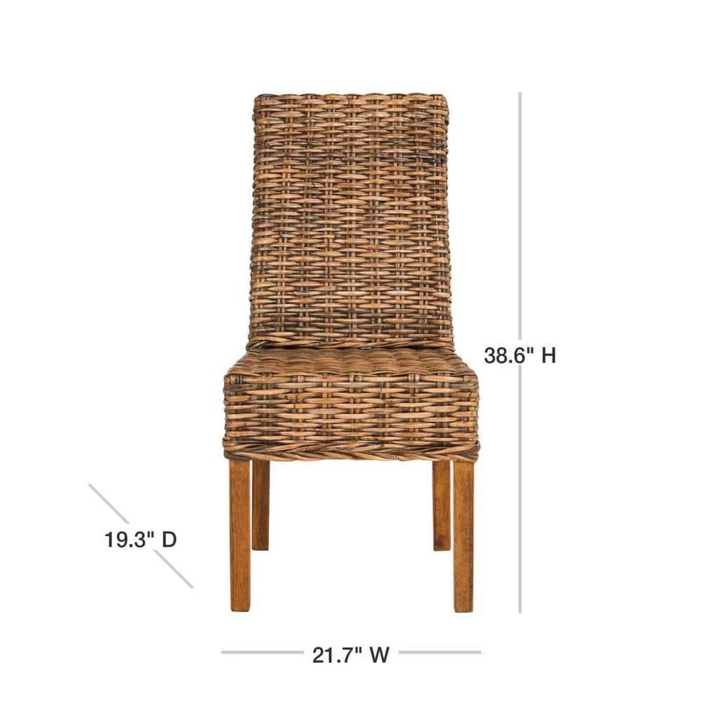 The transitional rattan Sanibel Side Chair brings a soft touch to contemporary interiors in need of warmth. Crafted with mango wood and beautifully woven rattan finished in neutral brown, this durable chair is at home in dining rooms, kitchens and casual living spaces. It is a perfect companion for country homes, or city apartment. (Sold in a set of two).