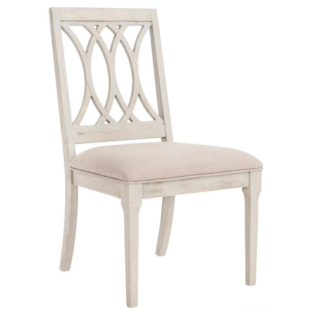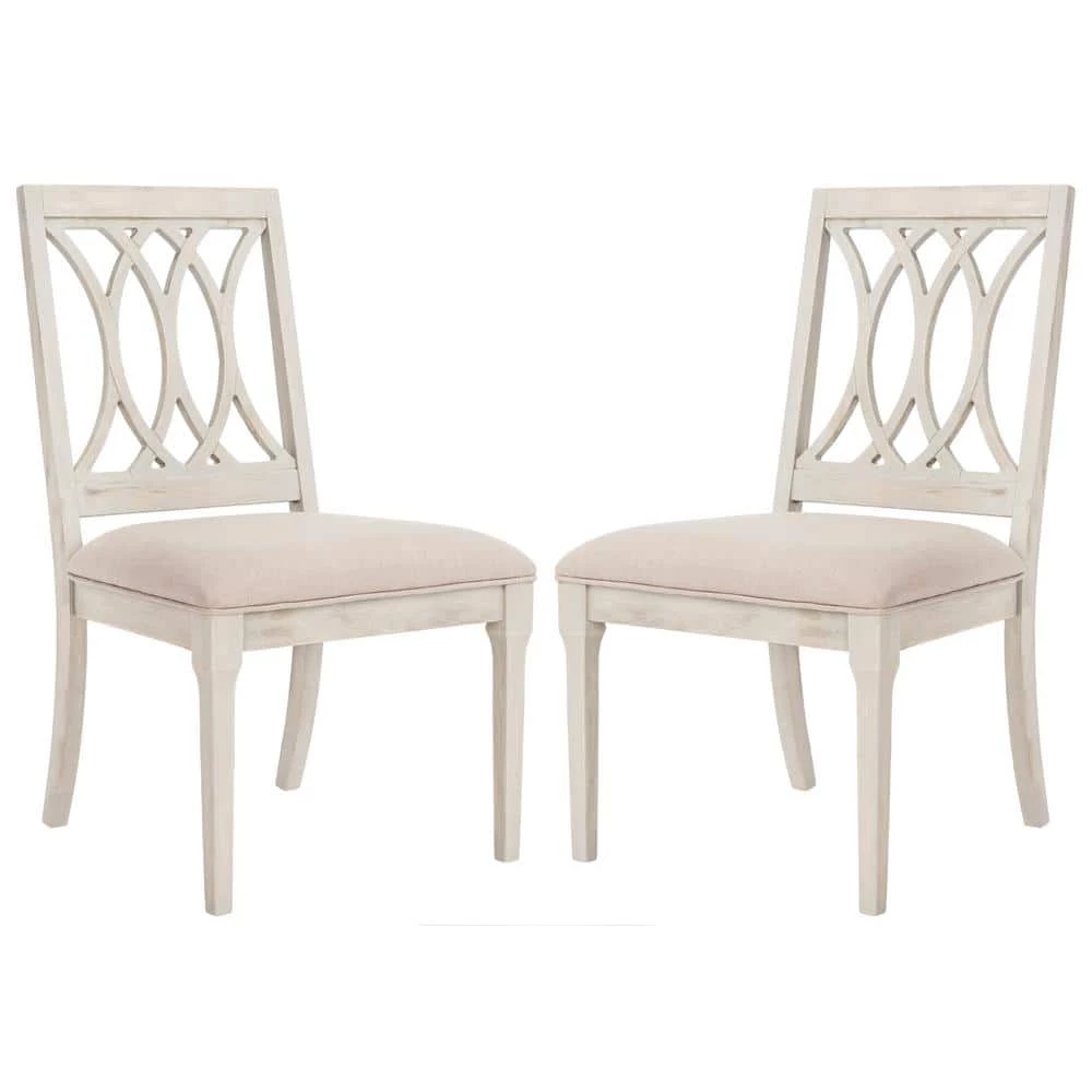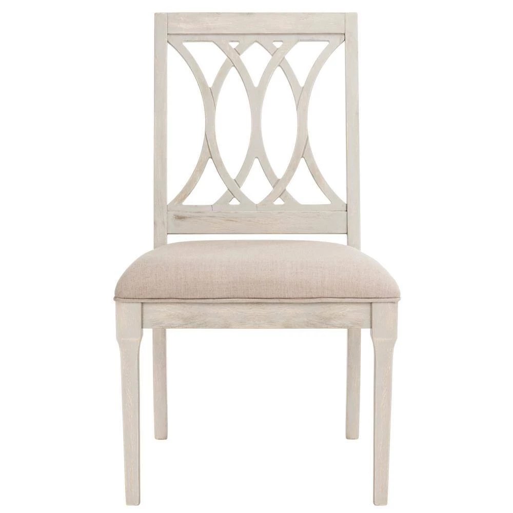 This modern spin on a traditional British dining chair is a designer favorite. Designed to capture the spirit of the newly renovated interiors of a Mayfair hotel, its antique white finish and bold taupe linen upholstery make it a modern classic. It is a perfect companion for country homes, city apartments or formal manors.