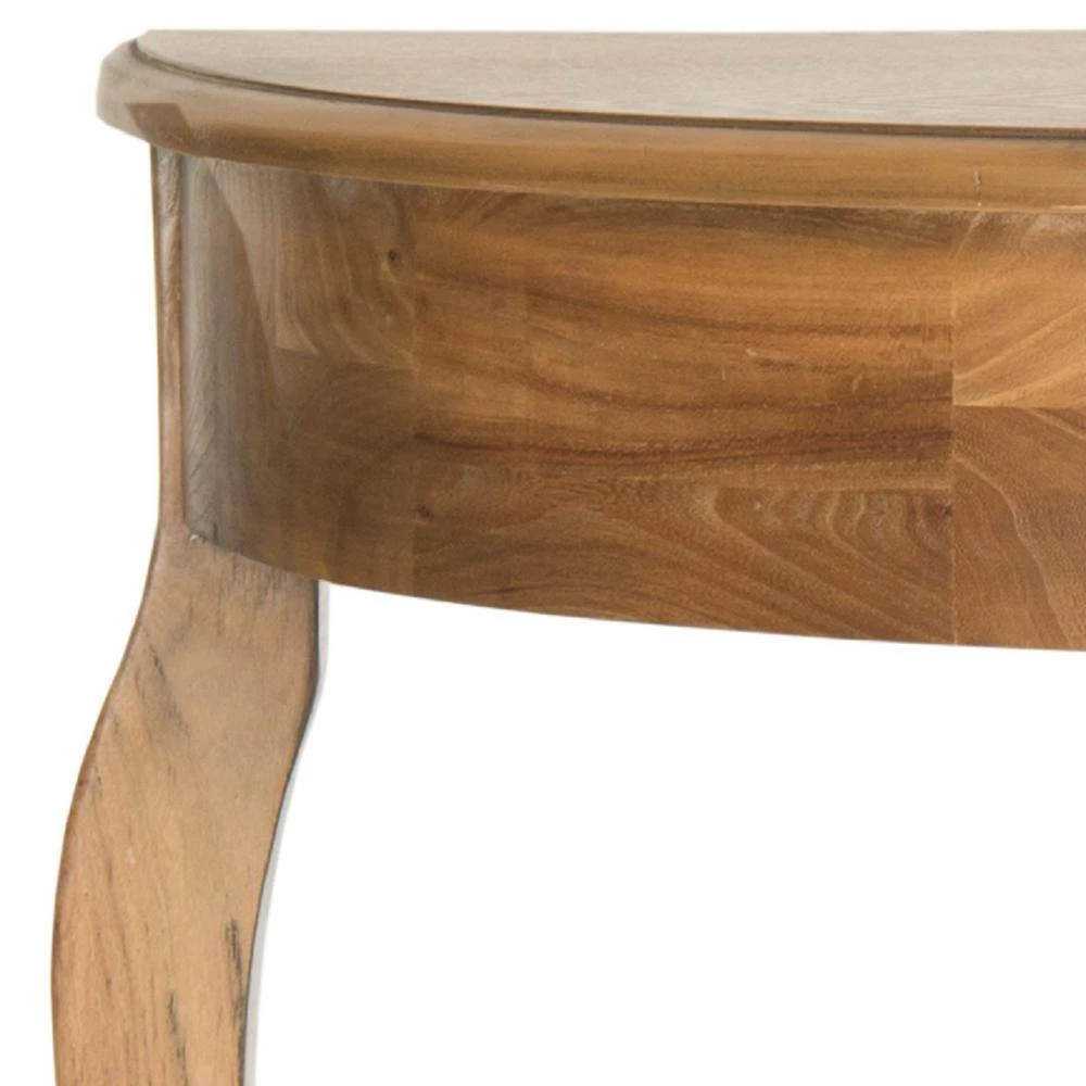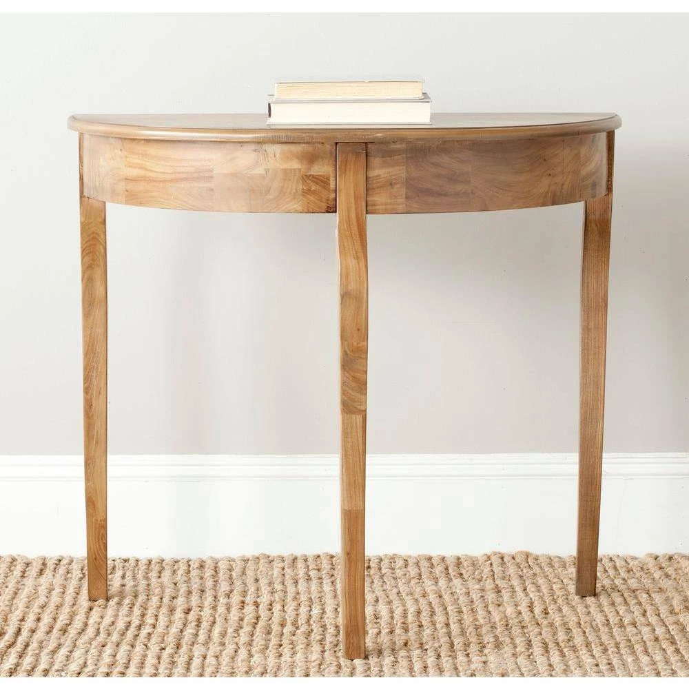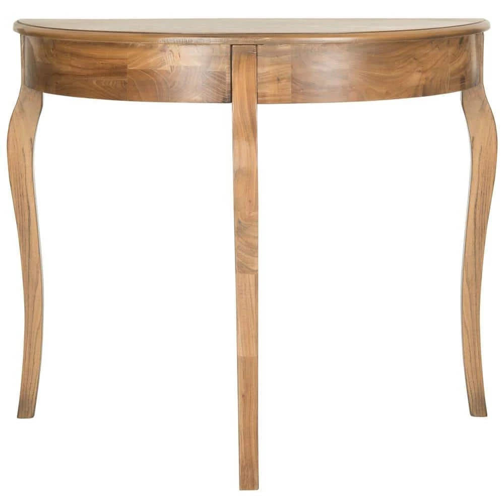 A transitional silhouette with updated cabriole legs insures that the Sema console by Safavieh will complement both traditional and soft contemporary interiors. Crafted of elm in an oak finish, this Demilune console will enhance any living room or hall. Dress up this console with a pair of lamps or vase filled with flowers for added charm. This is a great addition for your home whether you live in the country side or the busy city.